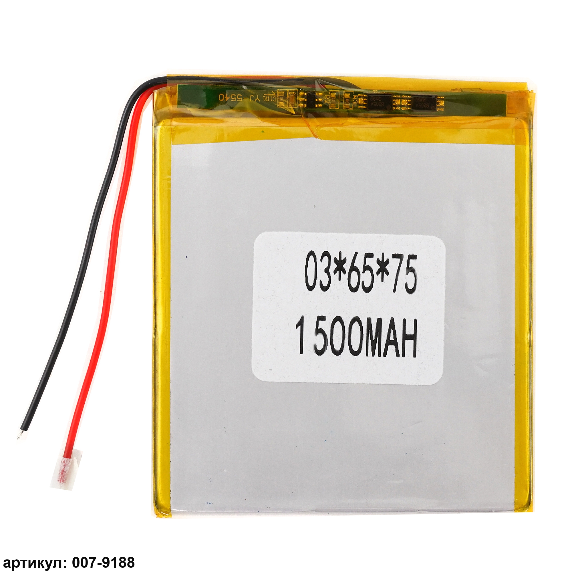 Аккумулятор 3.7v 1500mAh 75x65x3мм (2 pin)