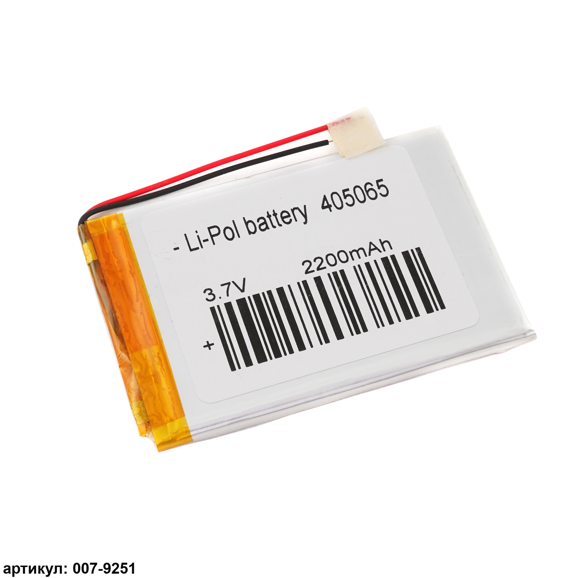Аккумулятор 3.7v 2200mAh 65x60x4 мм (2 pin)