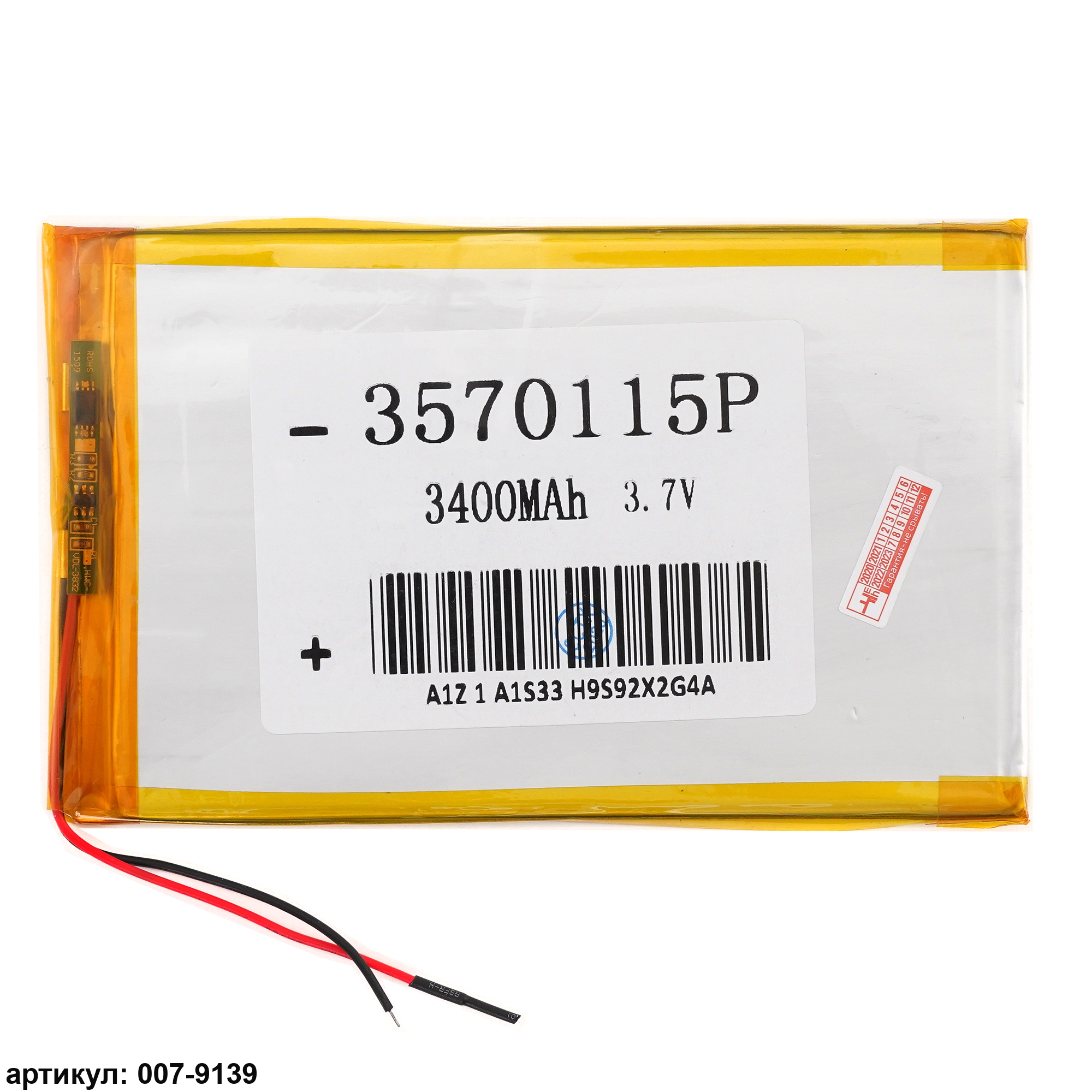 Аккумулятор 3.7v 3400mAh 115x70x3.5 мм (2 pin)