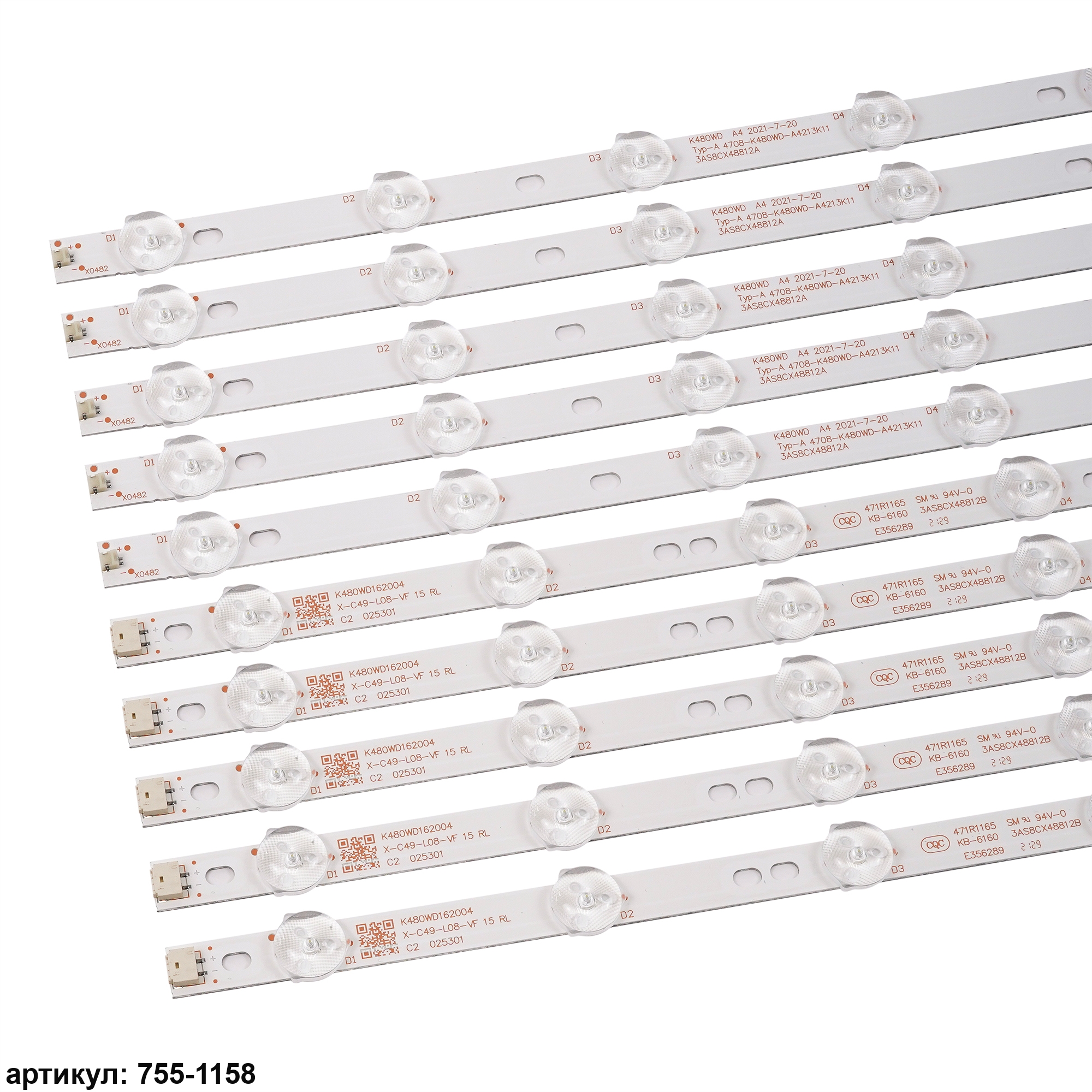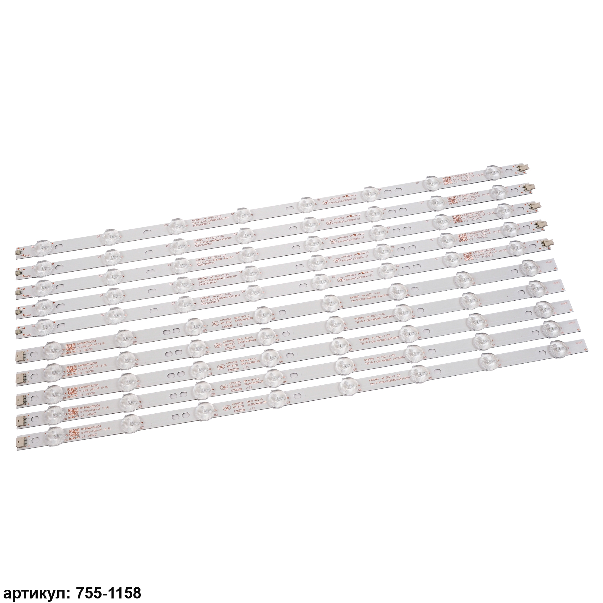 Комплект планок светодиодной подсветки для телевизора Philips 48' / (16 led 3V 990mm)Комплект включает в себя:- 5 планок 4708-K480WD-A4213K01 (8 led) (495mm)- 5 планок 4708-K480WD-A4213K11 (8 led) (495mm)Совместимые p/n: 4708-K480WD-A4213K01, 4708-K480WD-A4213K11, K480WD A4Подходит для моделей телевизора: Philips 48PFL3055/T3 , 48PFL5445 , TCL 48D8800