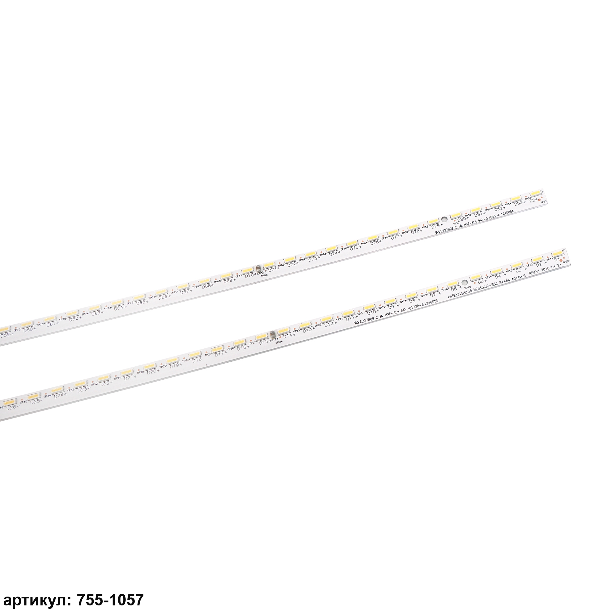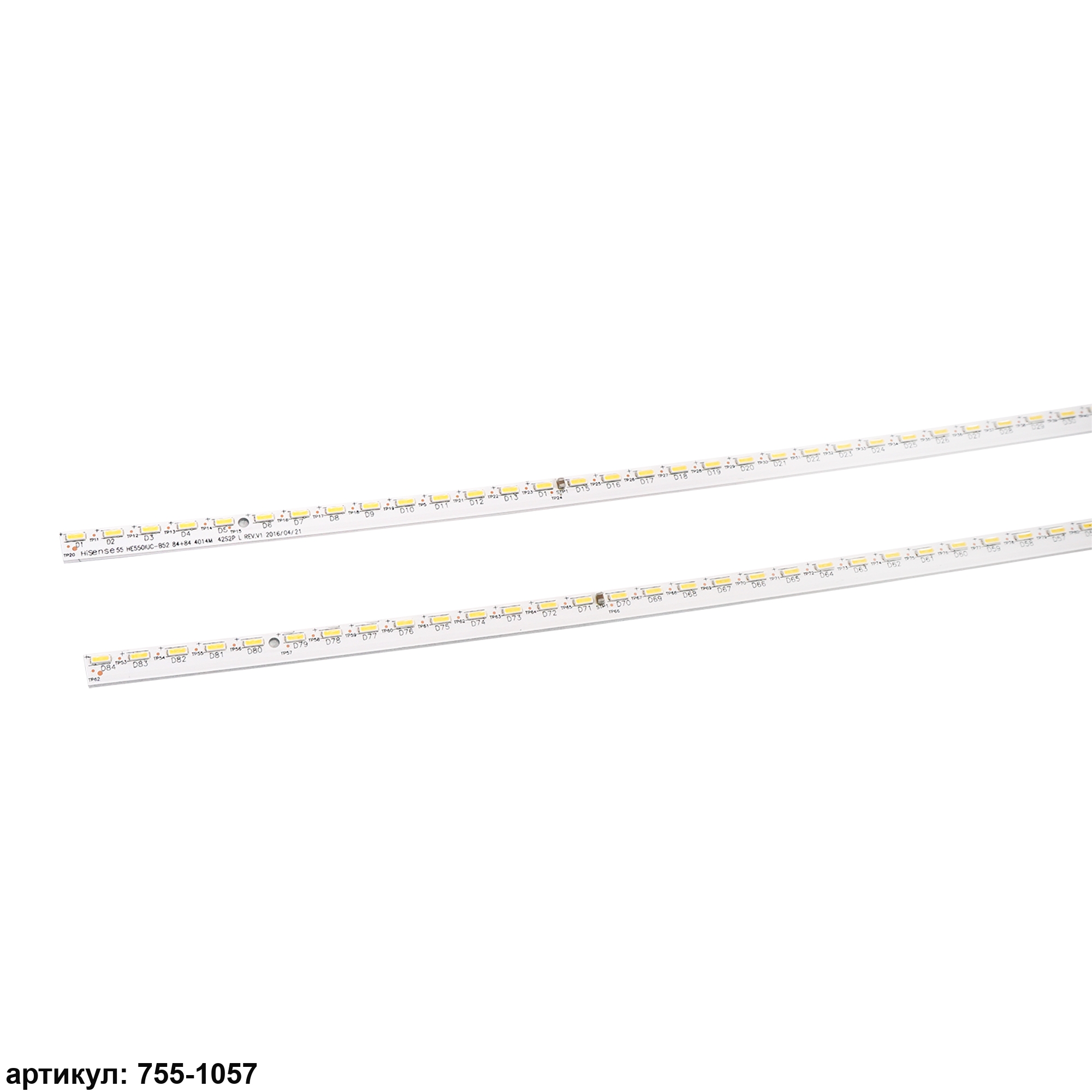 Комплект планок светодиодной подсветки для телевизора Hisense 55' / (84 led 3V 598mm)Комплект включает в себя: - 1 планку 55' HE550IUC-B52-84+84-4014M-R- 1 планку 55' HE550IUC-B52-84+84-4014M-LСовместимые p/n: HE550IUC-B52, LT-20160924NПодходит для моделей телевизора: Hisense LED55M5600UC