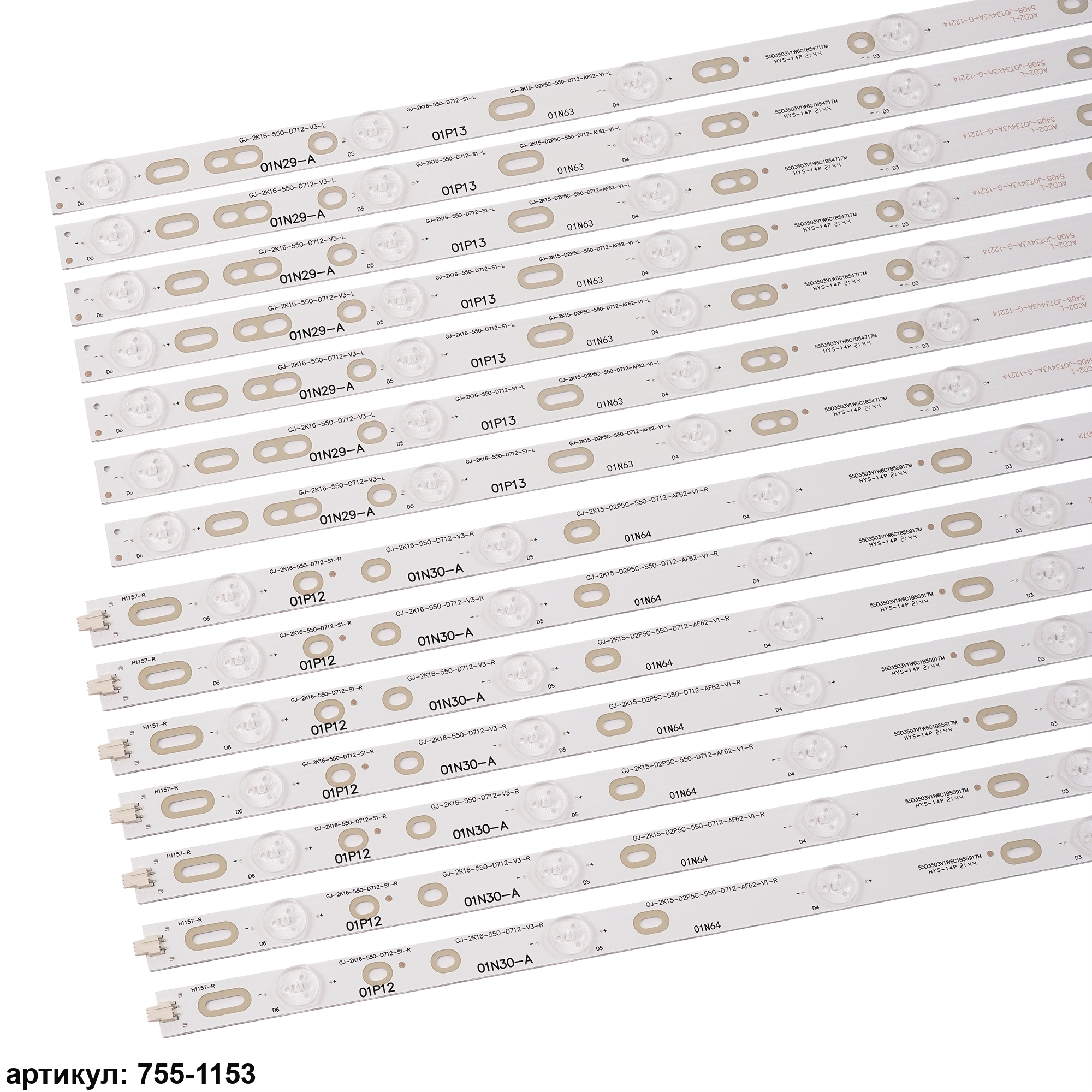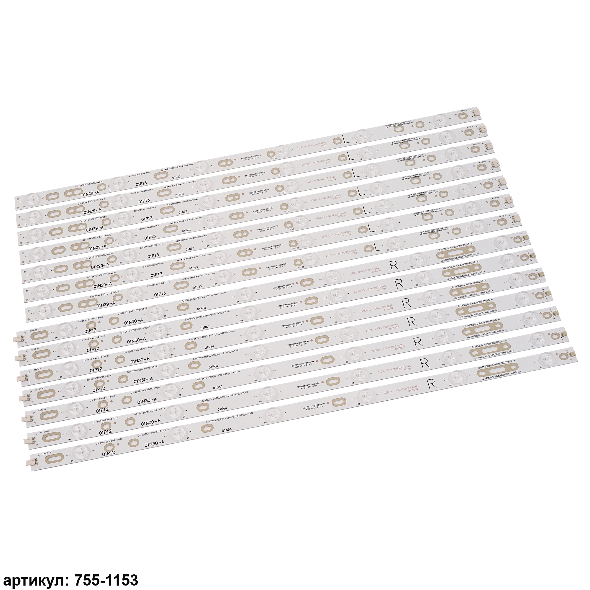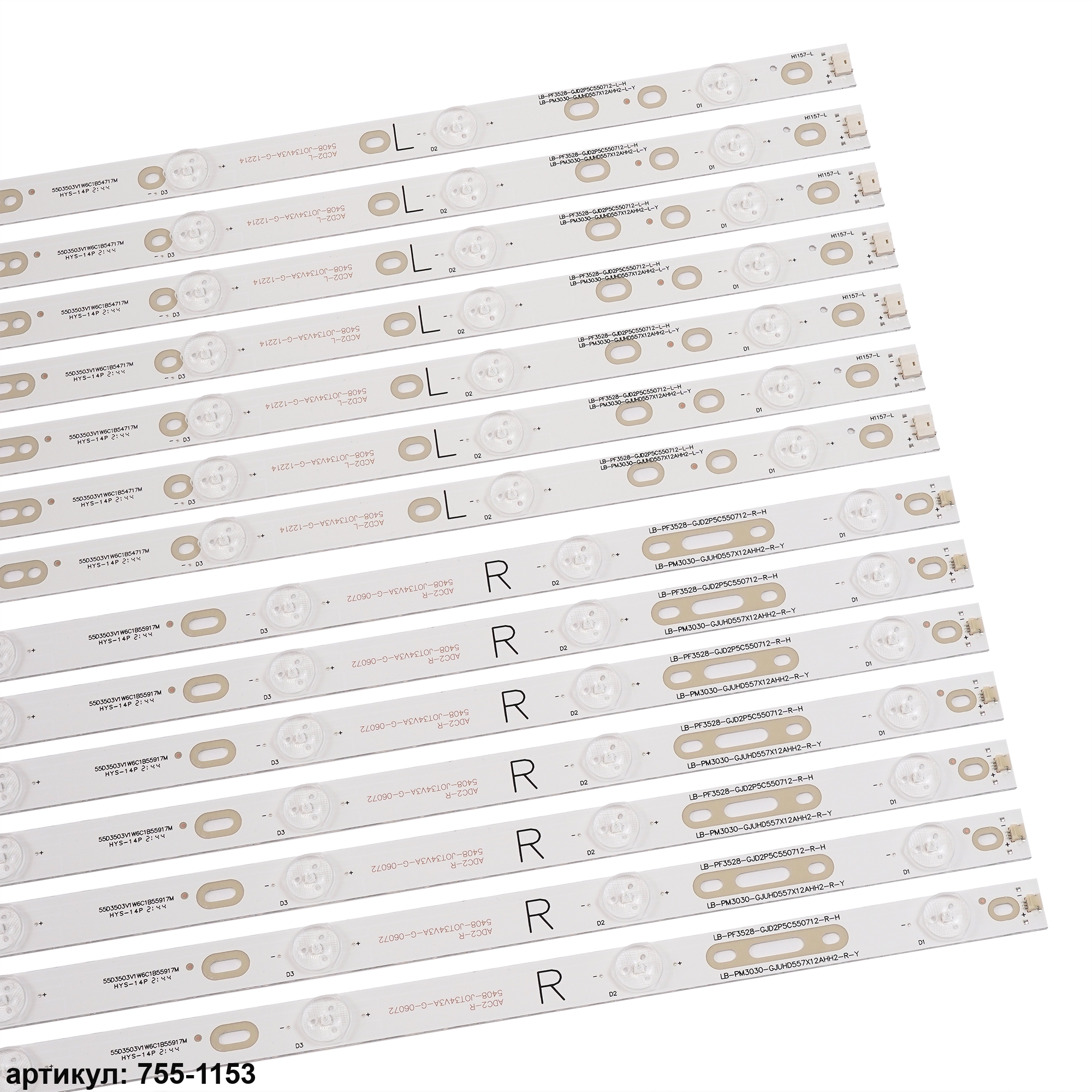 Комплект планок светодиодной подсветки для телевизора Philips 55' / (12 led 3V 1097mm)Комплект включает в себя:- 7 планок LB-PF3528-GJD2P5C550712-L-H (6 led) (545mm)- 7 планок LB-PF3528-GJD2P5C550712-R-H (6 led) (549mm)Совместимые p/n: LB-PF3528-GJD2P5C550712-L-H, LB-PF3528-GJD2P5C550712-R-H, GJ-2K16-550-D712-V3-R, GJ-2K16-550-D712-V3-L, GJ-2K15-D2P5C-550-D712-AF62-V1-L/R,Подходит для моделей телевизора: Philips 55PFF3750/T3, 55PUF6701/T3, 55PUF6461/T3, 55PFF6340, 55PFF3655/T3, 55PUF6650/T3, 55PUF6721/T3, 55PFF2651/T3, 55PFL5449/T3, 55HUF6982/T3, 55PFL6840/T3, 55PFF3750/T3