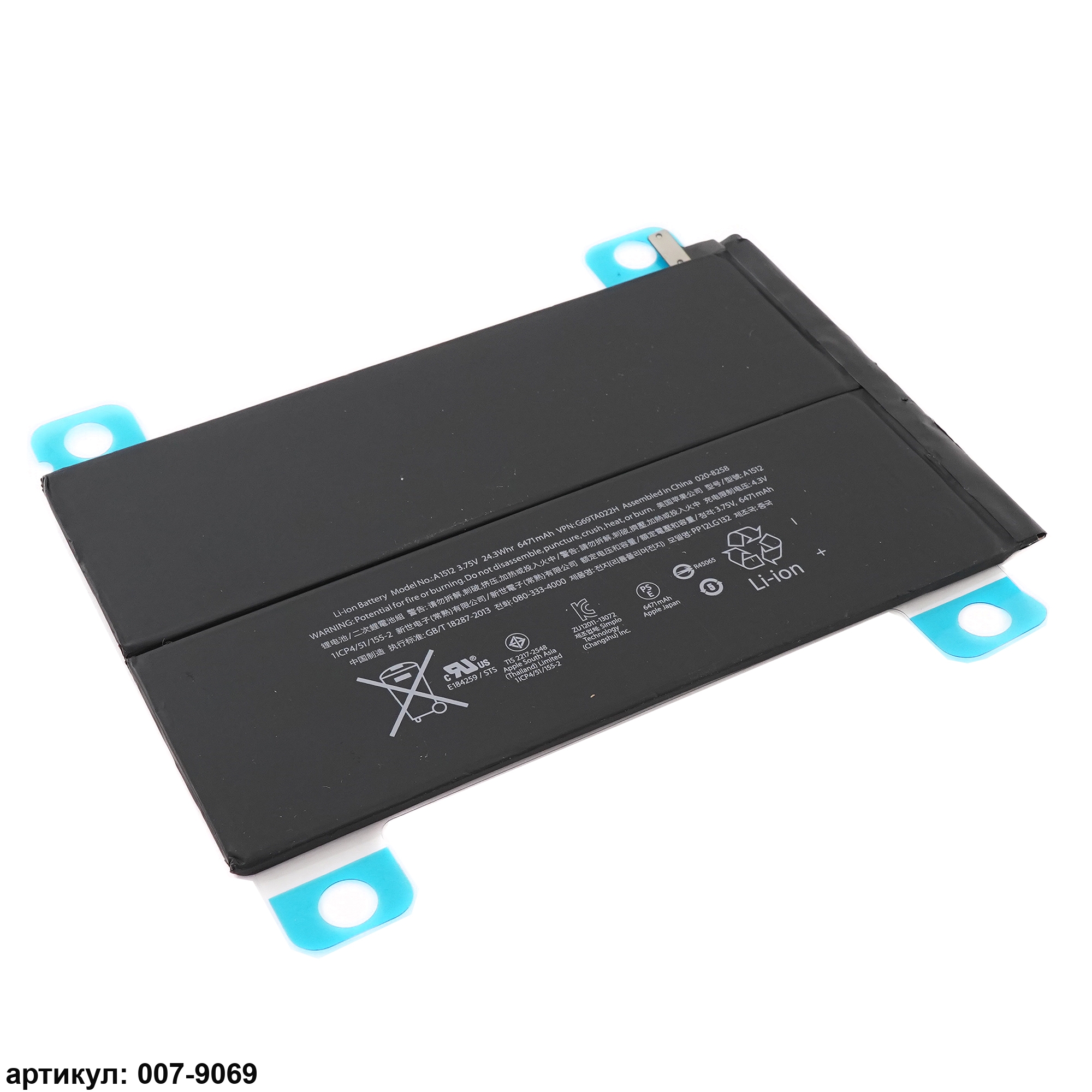 Подходит к планшетам: Apple iPad Mini 2, Mini 3 RetinaСовместимые p/n: 020-8271-A, A1489, A1490, A1512, A1599, A1600, A1601, 020-8257