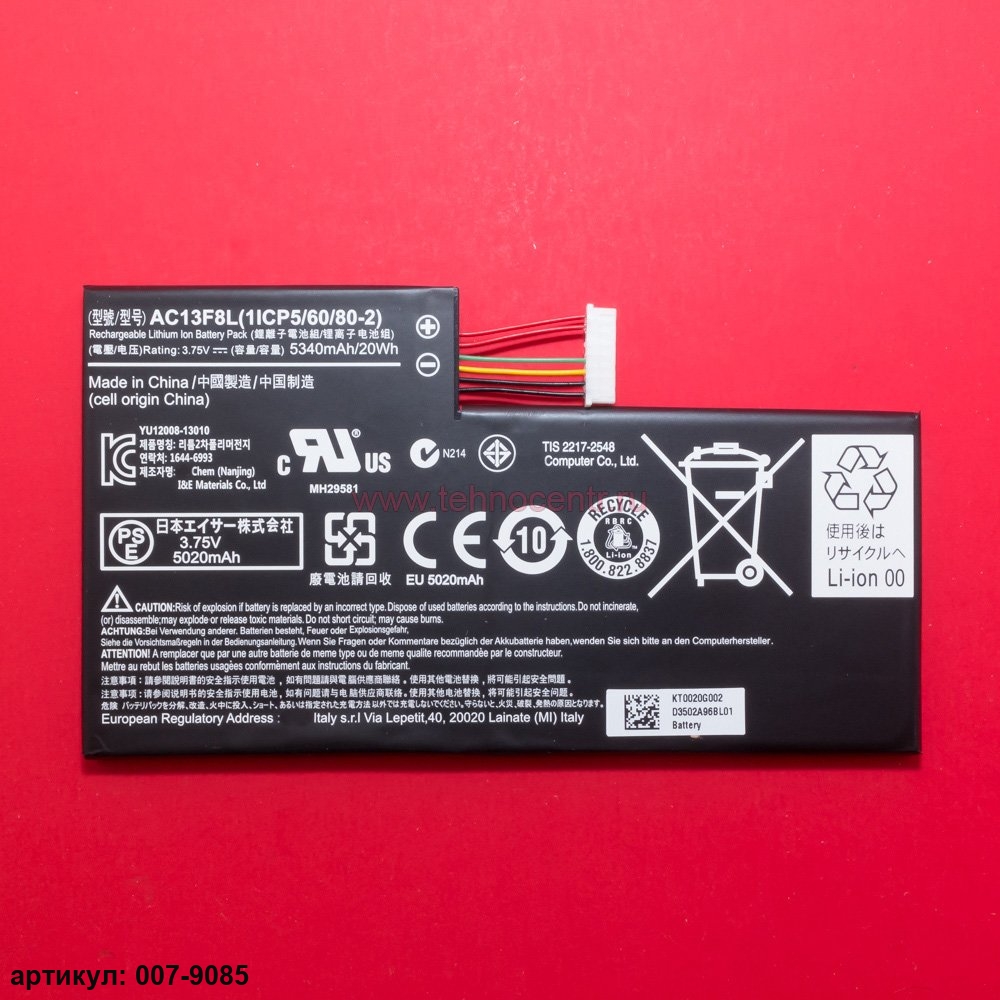 Подходит к планшетам: Acer Iconia Tab A1-810, A1-811, W4-820, W4-821Совместимые p/n: AC13F8L, AC13F8L(1ICP5/60/80-2), KT0020G002, AC13F3L, CS-ACT100SL, KT.00203.004, KT.0020G.00