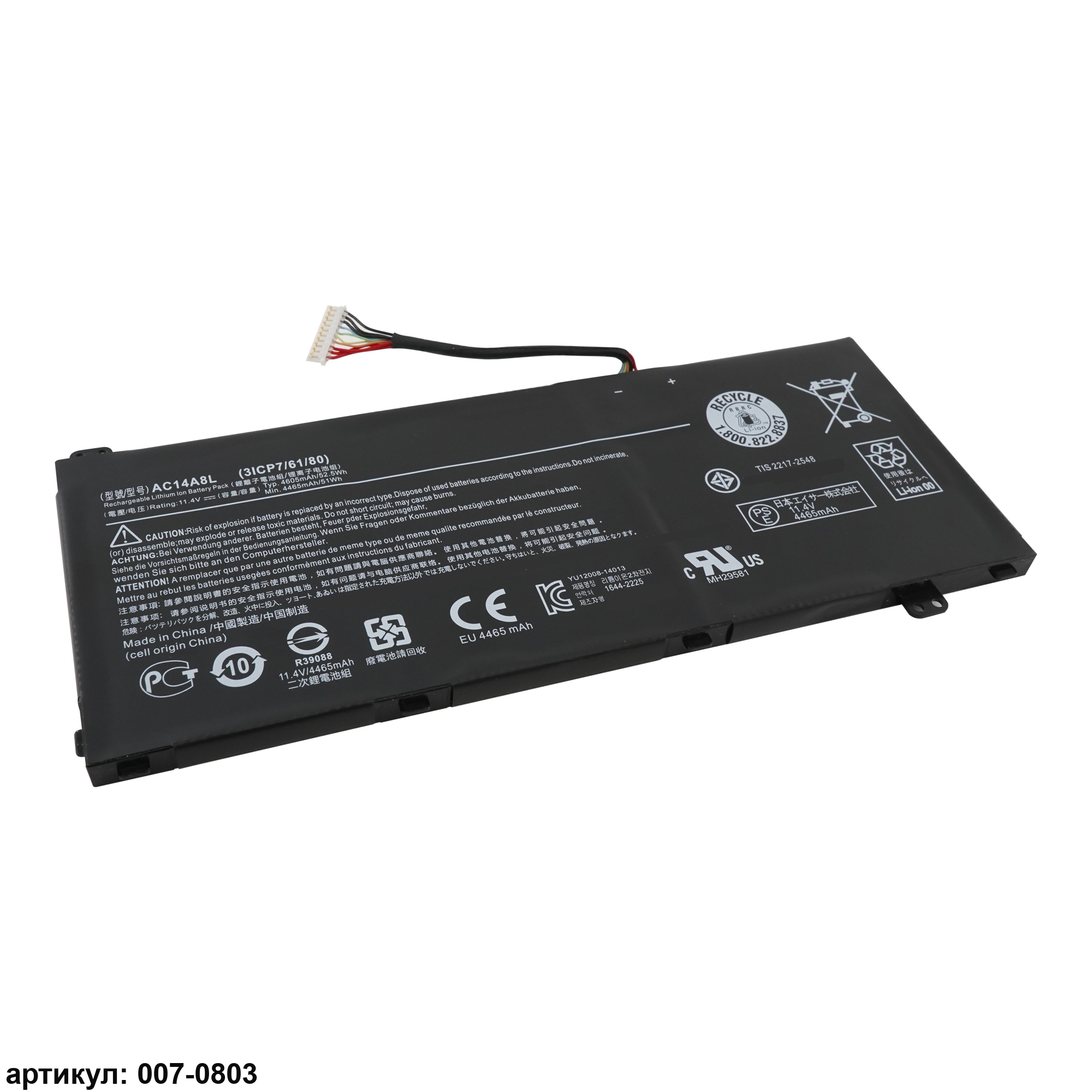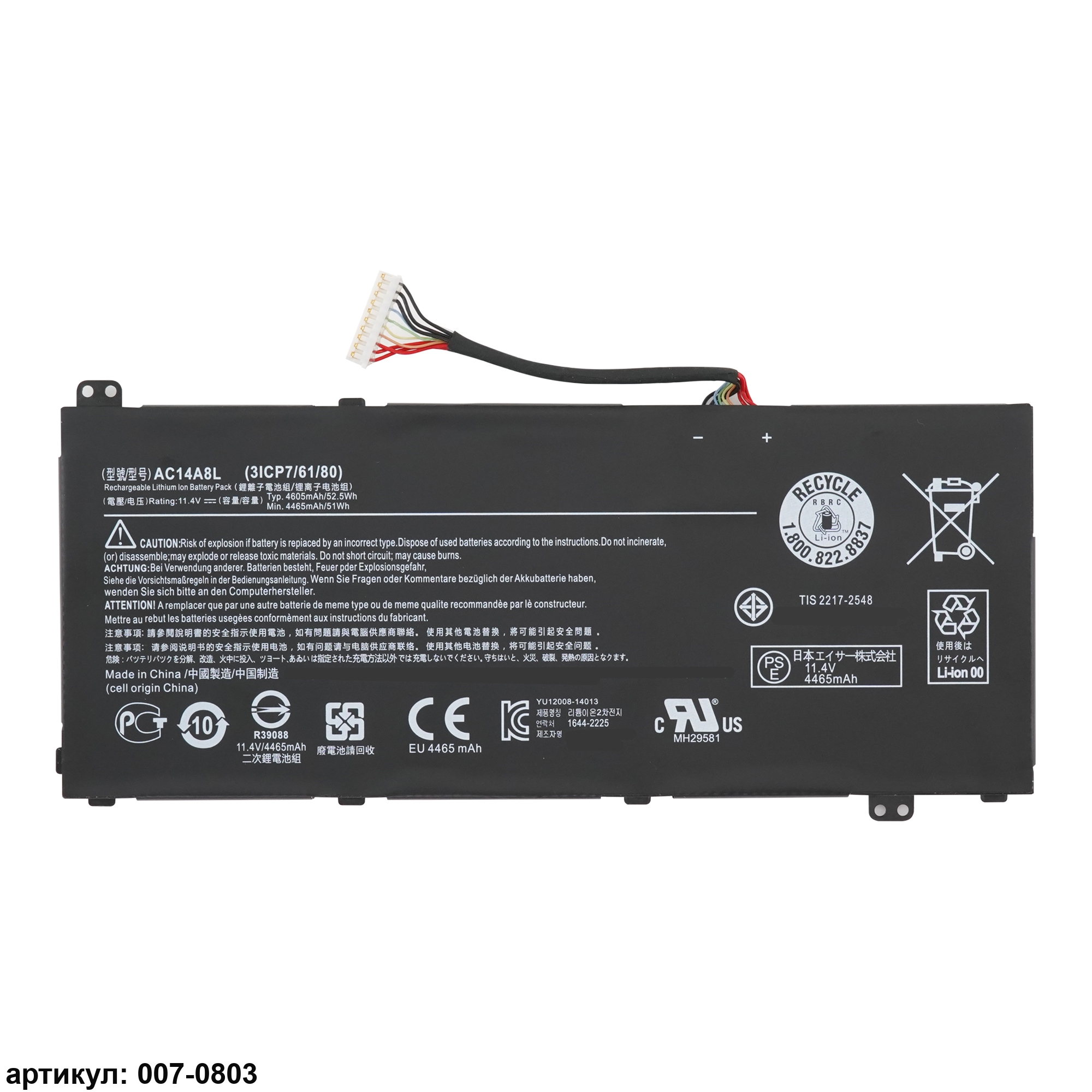 Совместимые P/N: AC14A8L, KT.0030G.001, 3ICP7/61/80