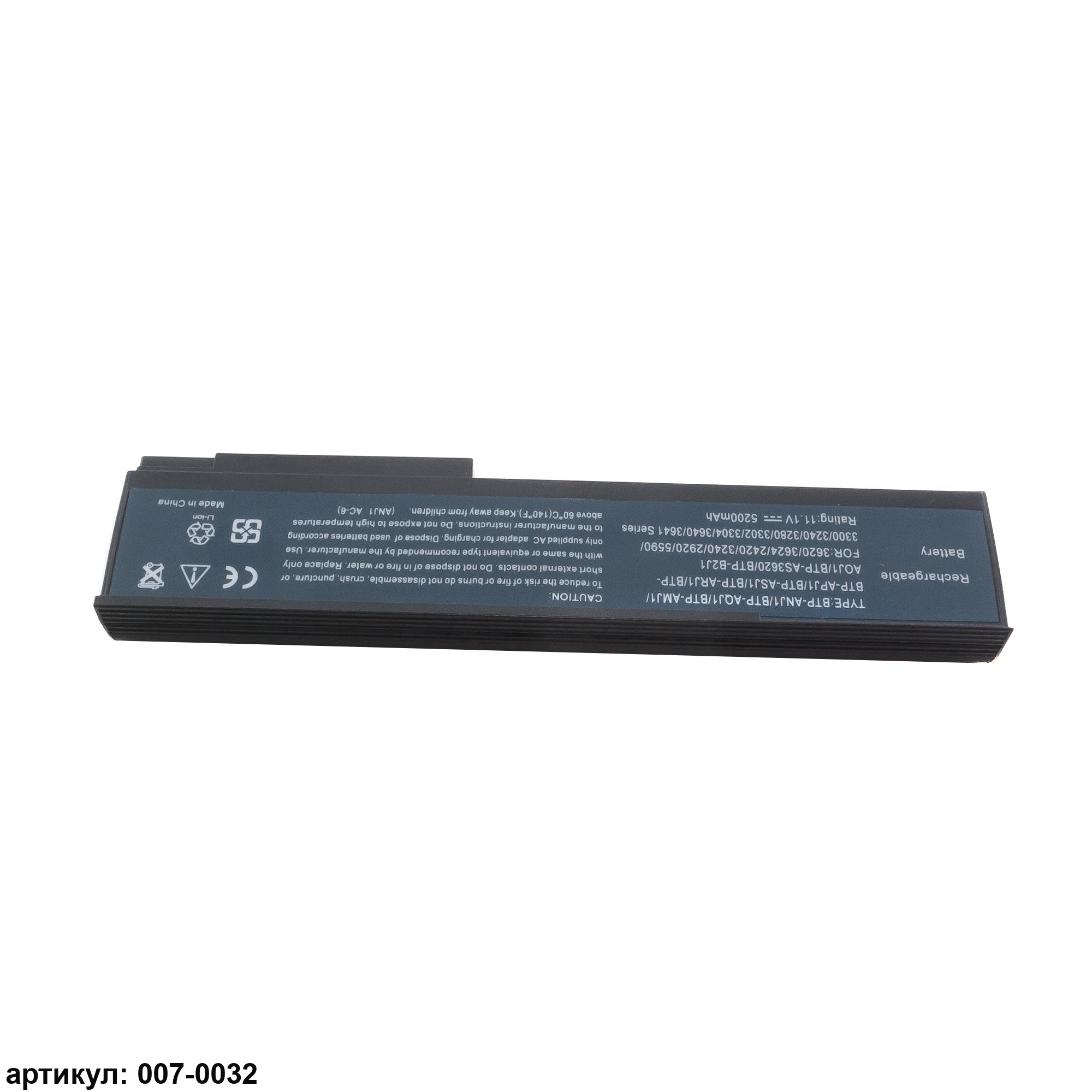 Совместимые P/N: TM07B41, TM07B71, GARDA31, GARDA32, BTP-AMJ1, BTP-ANJ1, BTP-AOJ1, BTP-APJ1, BTP-AQJ1, BTP-ARJ1, BTP-AS3620, BTP-ASJ1, BTP-B2J1, MS2180, AK.006BT.021, AK.009BT.056, BT.00603.012, BT.00603.039, BT.00603.040, BT.00603.044, BT.00604.005, BT.00604.006, BT.00604.017, BT.00604.027, BT.00605.006, BT.00605.007, BT.00607.003, BT.00607.009, BT.00904.003, LC.BTP00.021, LC.BTP00.022, LC.BTP01.010, LC.BTP01.011, LC.TG600.001