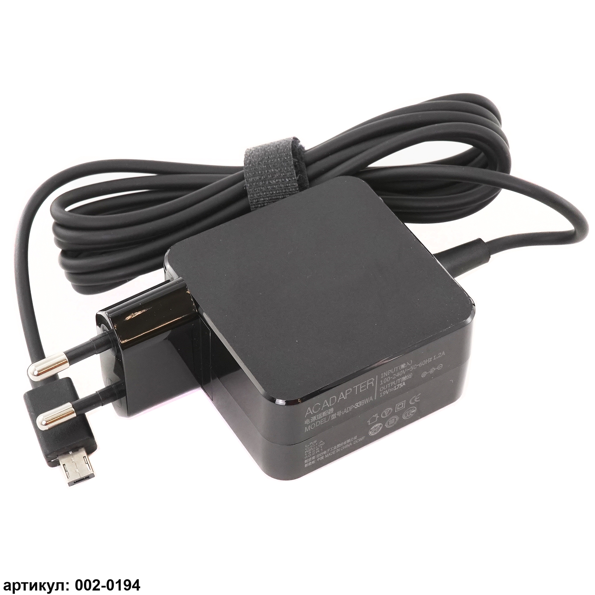 Asus 19V 1.75A (33W) прямоугольный разъем, вилка сбоку (квадратная)