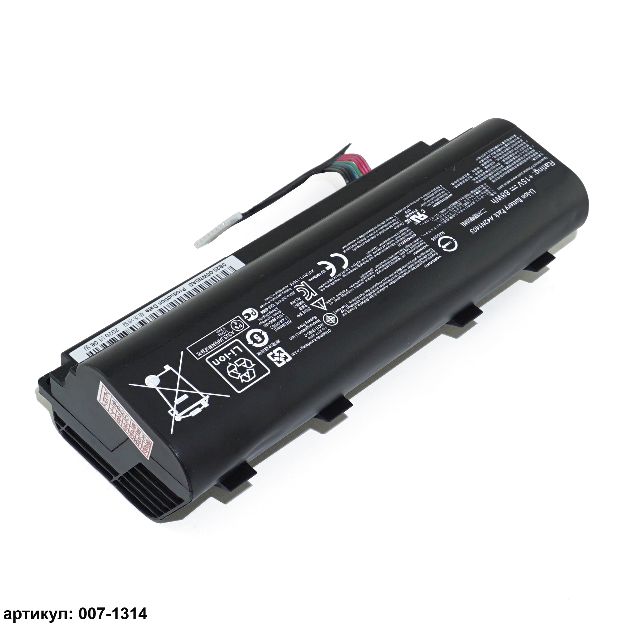 Подходит к сериям ноутбуков: Asus G751, G751JM, GFX71, GFX71JYСовместимые P/N: A42N1403, A42LM93, 4ICR19/66-2, 0B110-00290000, 0B110-00340000