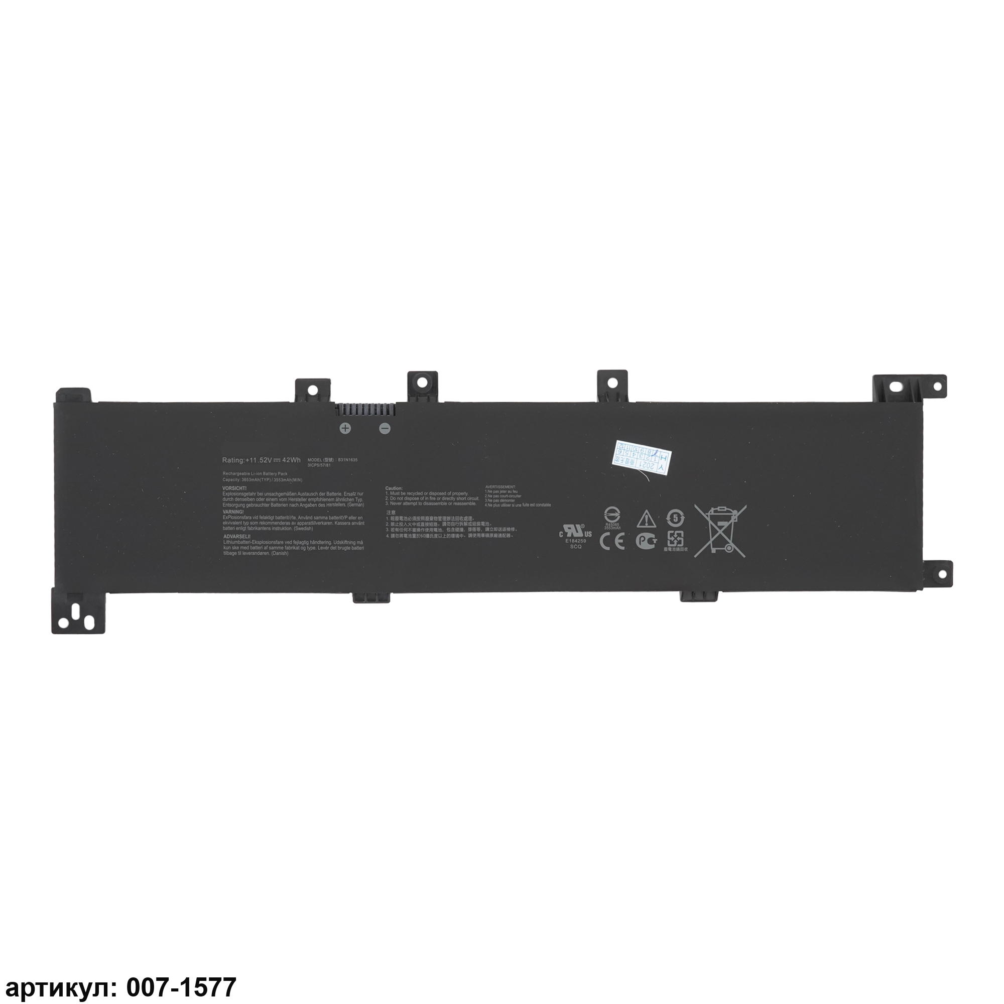 Подходит к сериям ноутбуков: Asus 17 X705NA, X705UQ, X705NC, X705UA, X705UNСовместимые P/N: B31N1635