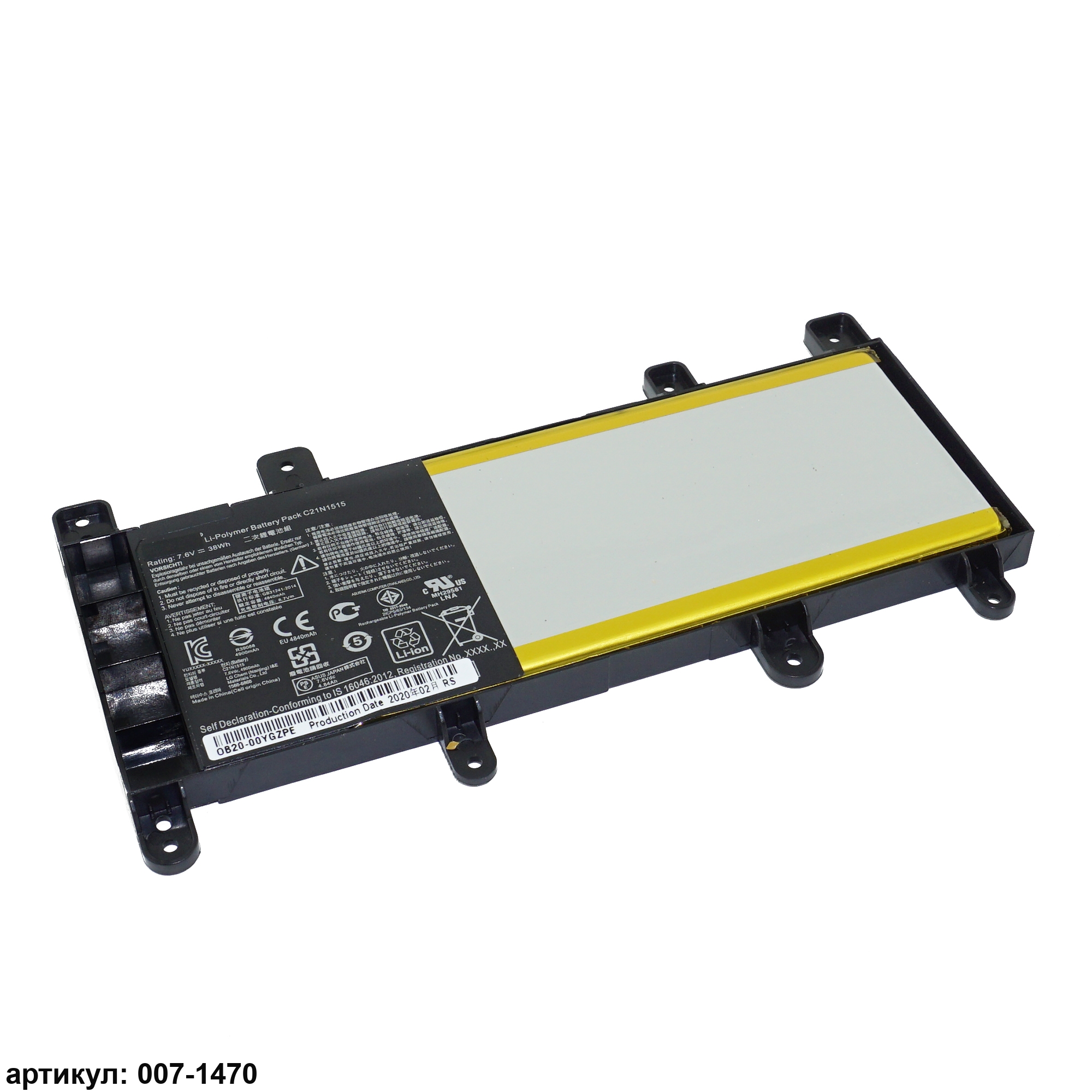 Подходит к сериям ноутбуков: Asus X756, X756U, X756UA, X756UQ, X756UVСовместимые P/N: 0B200-01800100, C21N1515