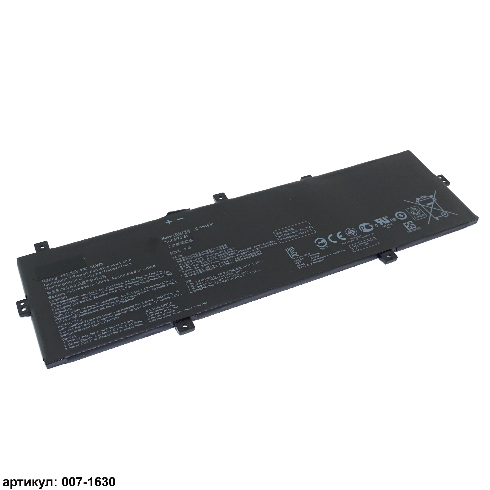 Подходит к сериям ноутбуков: Asus UX430, UX430UQ, UX430UQ-GV015T, RX430, BX430, PU404, U4100, P5340Совместимые P/N: C31N1620Внимание: существуют два Типа оригинальных аккумуляторов C31N1620