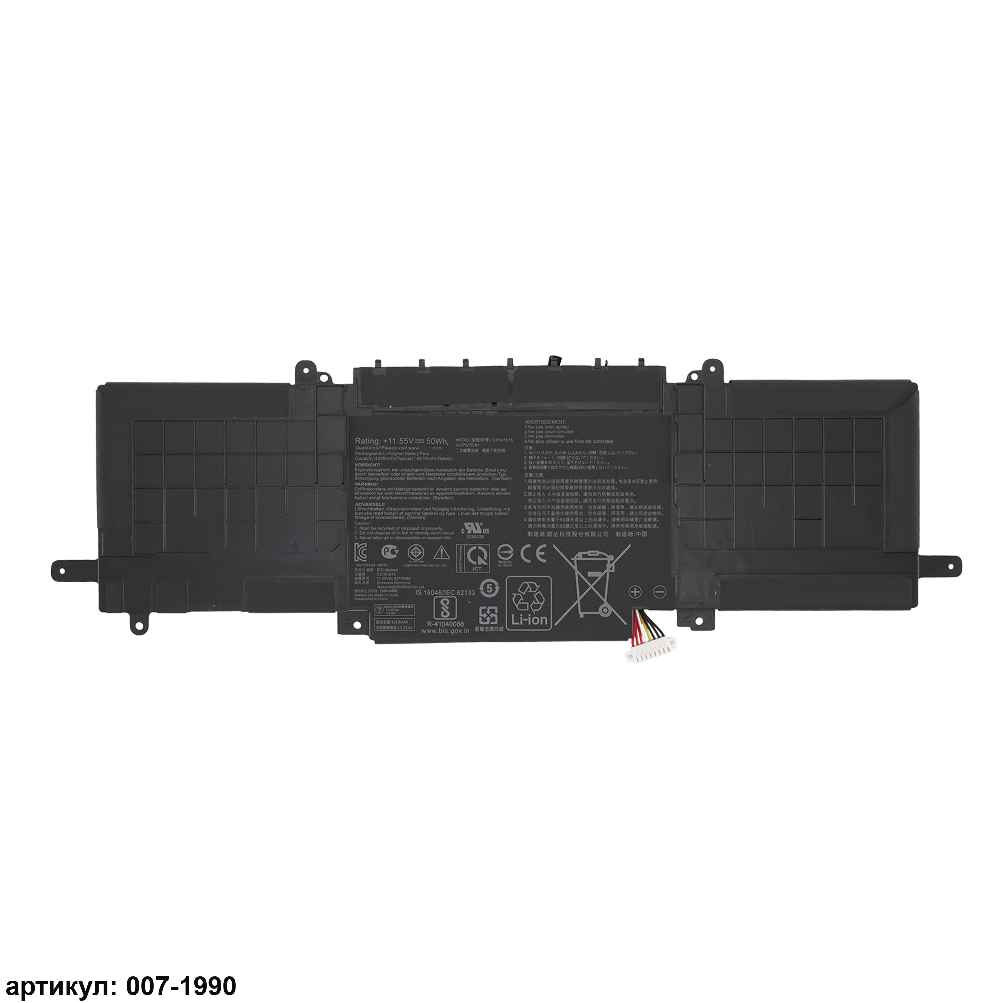 Подходит к сериям ноутбуков: Asus Zenbook 13 UX333, UX333F, UX333FA, UX333FNСовместимые P/N: C31N1815, 0B200-03150000