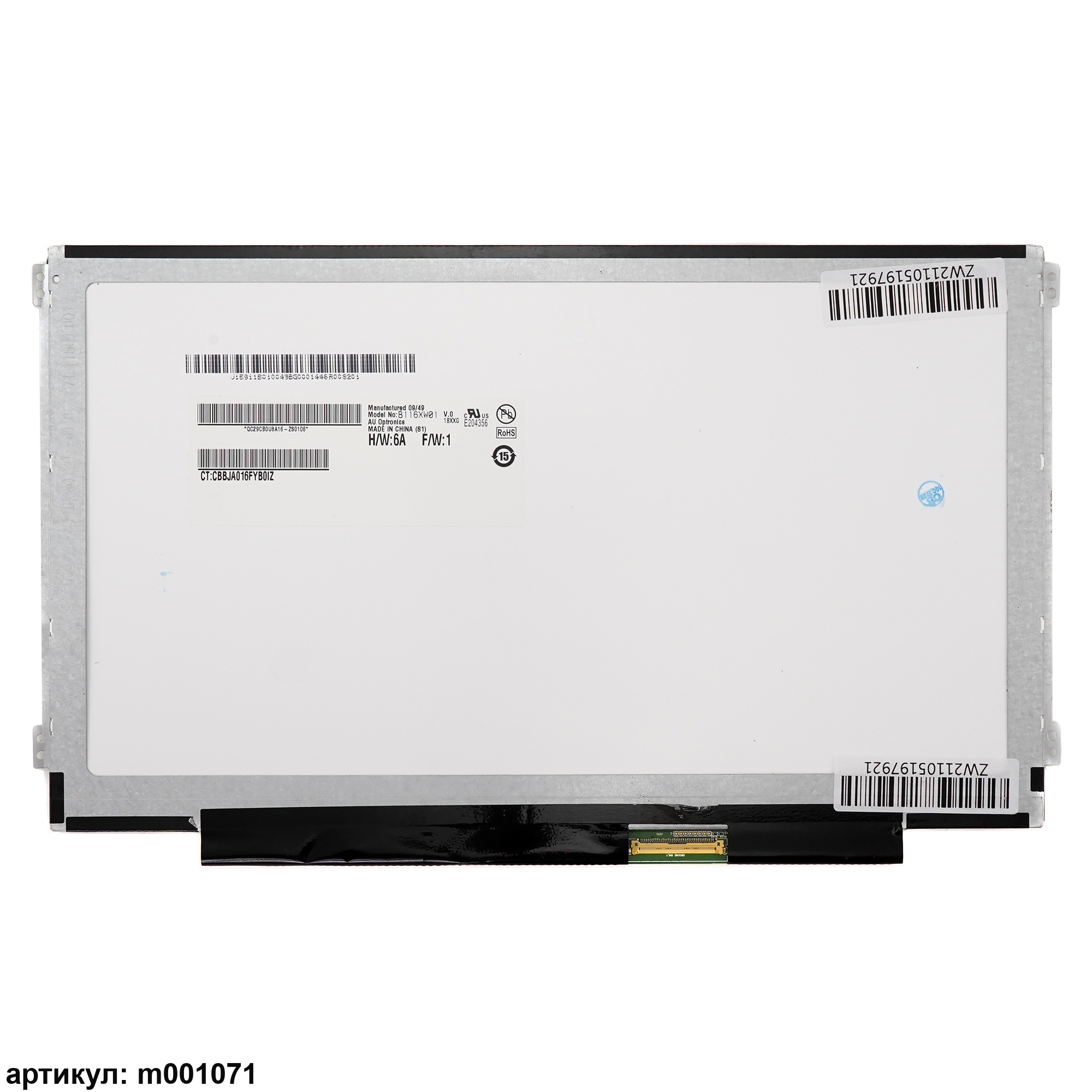 Матрица тонкая (slim), крепления расположены слева и справа.Разъем подключения расположен справа внизу на внешней плате.Совместимые модели: N116BGE-L41 C2, N116BGE-L42 C1, N116BGE-L42 B2, B116XW03 V.1, B116XW03 V.1,B116XW01 V.0, LTN116AT04, LTN116AT04-S01, LP116WH2-TLC1, LP116WH2-TLB1