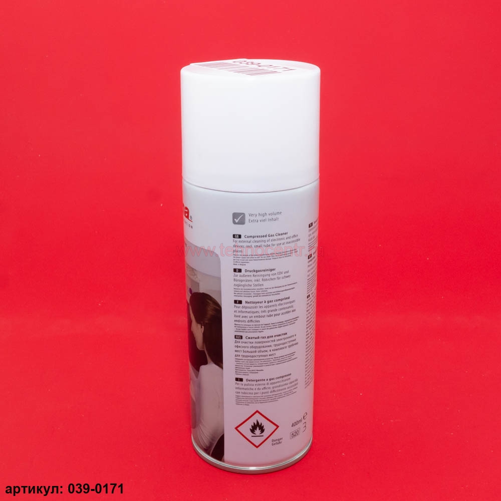 Балон-спрей со сжатым воздухом Hama Compressed Gas Cleaner 400ml. Предназначен для очистки компьютерной и офисной техники в труднодоступных местах.