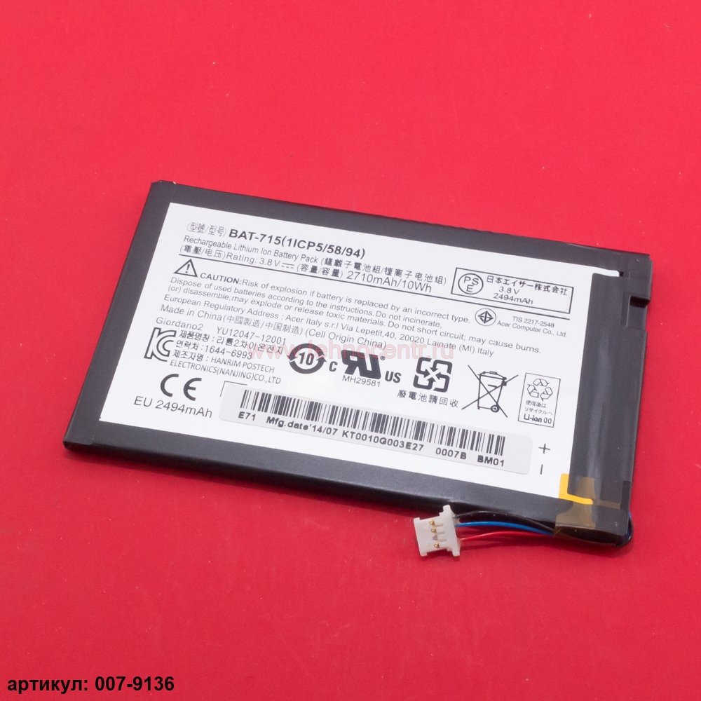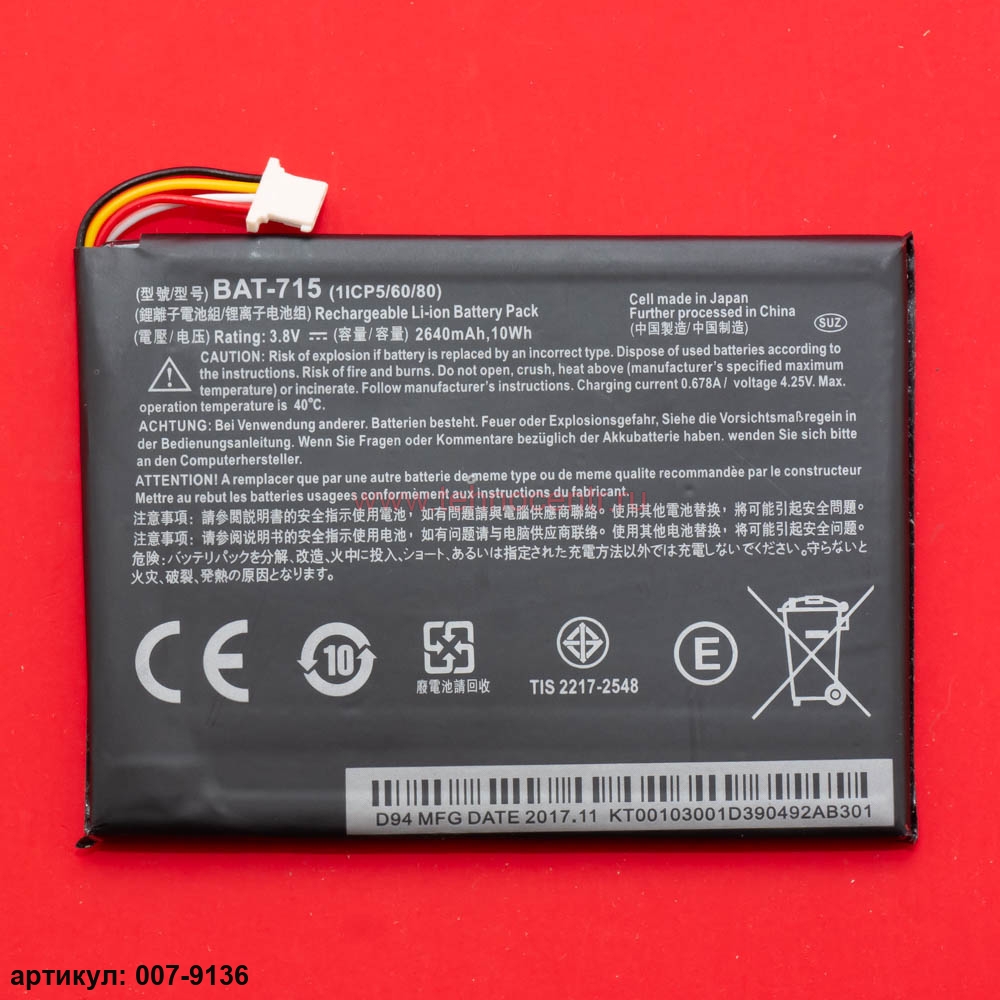 Совместимые P/n: BAT-715(1ICP5/60/80), KT.00103.001, CS-ACB710SL