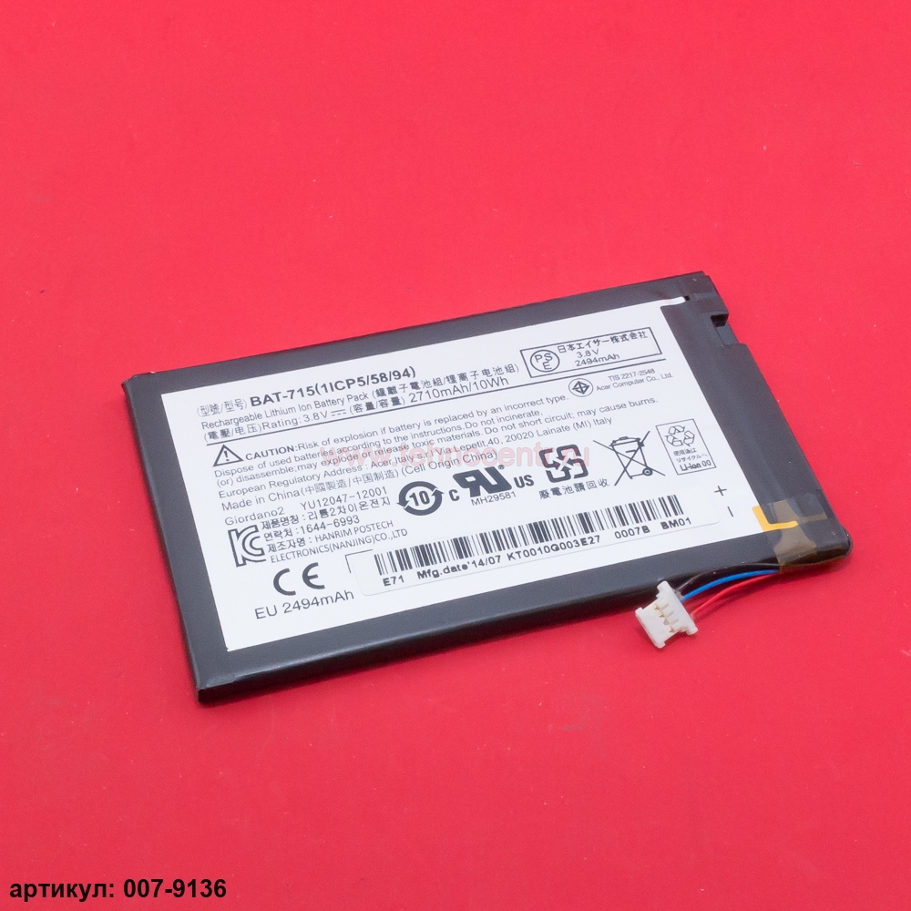 Аккумулятор BAT-715 для Acer Iconia Tab B1-710, B1-711