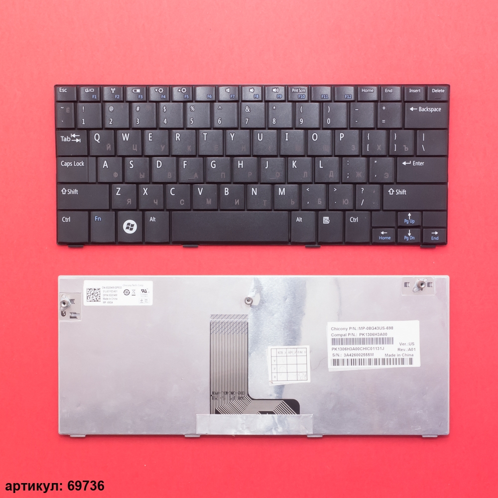 Клавиатура подходит к ноутбукам: Dell Inspiron Mini 10, 10v, 1010, 1011Совместимые P/n: MP-08G43SU-698, MP-08G43SU-6981, 0G276M, PK1306H3A06, PK130831A06, CN-0P690M, 0P690M, V101102BS, PK130831A00, PK130832A06, 0D443P, PK130832A01, V01102BS1, MP-08G43US-6981