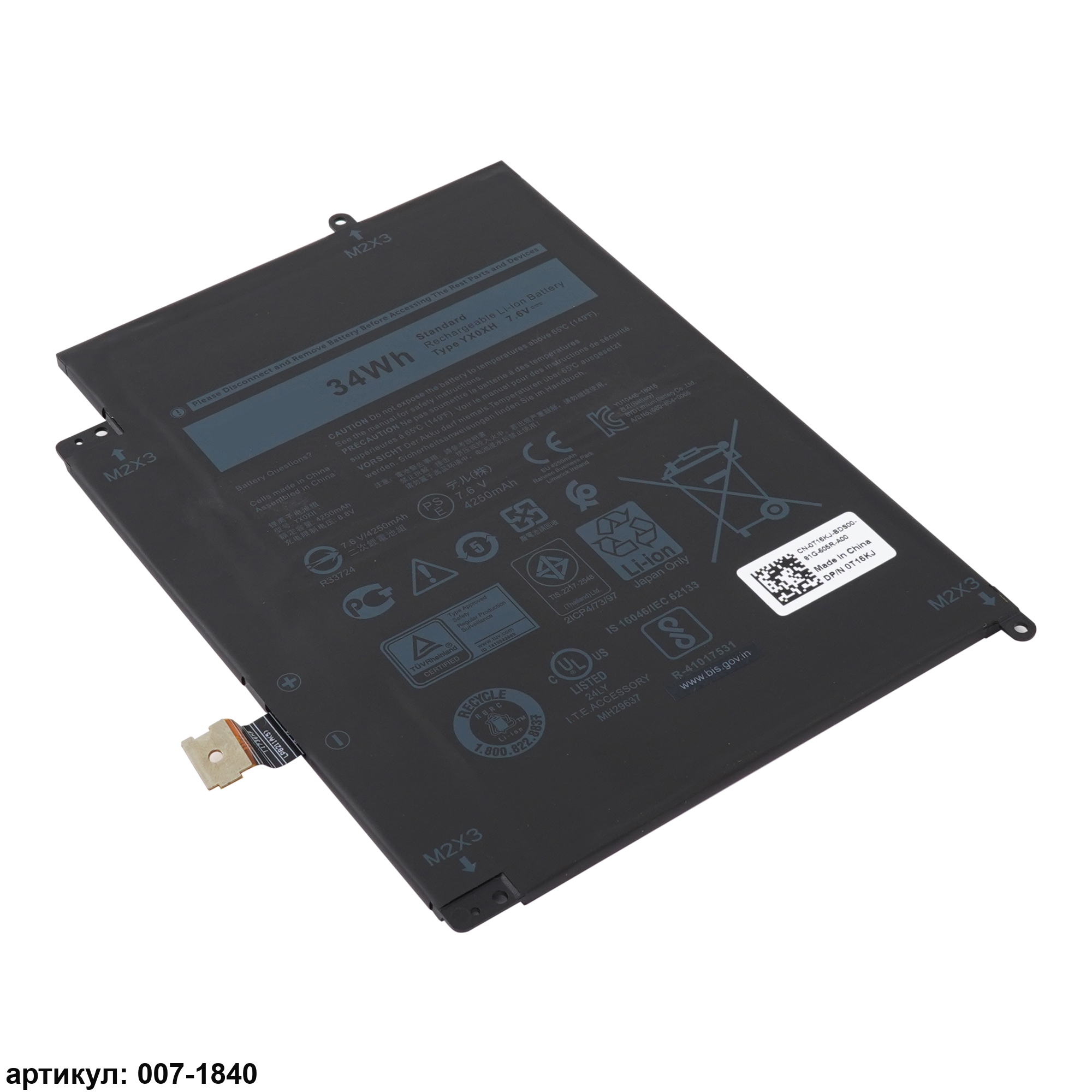 Подходит к сериям ноутбуков: Dell Latitude 7285Совместимые P/N: YX0XH, YXOXH, OWYCVV, 0WYCVV, WYCVV, C668F, 0C668F