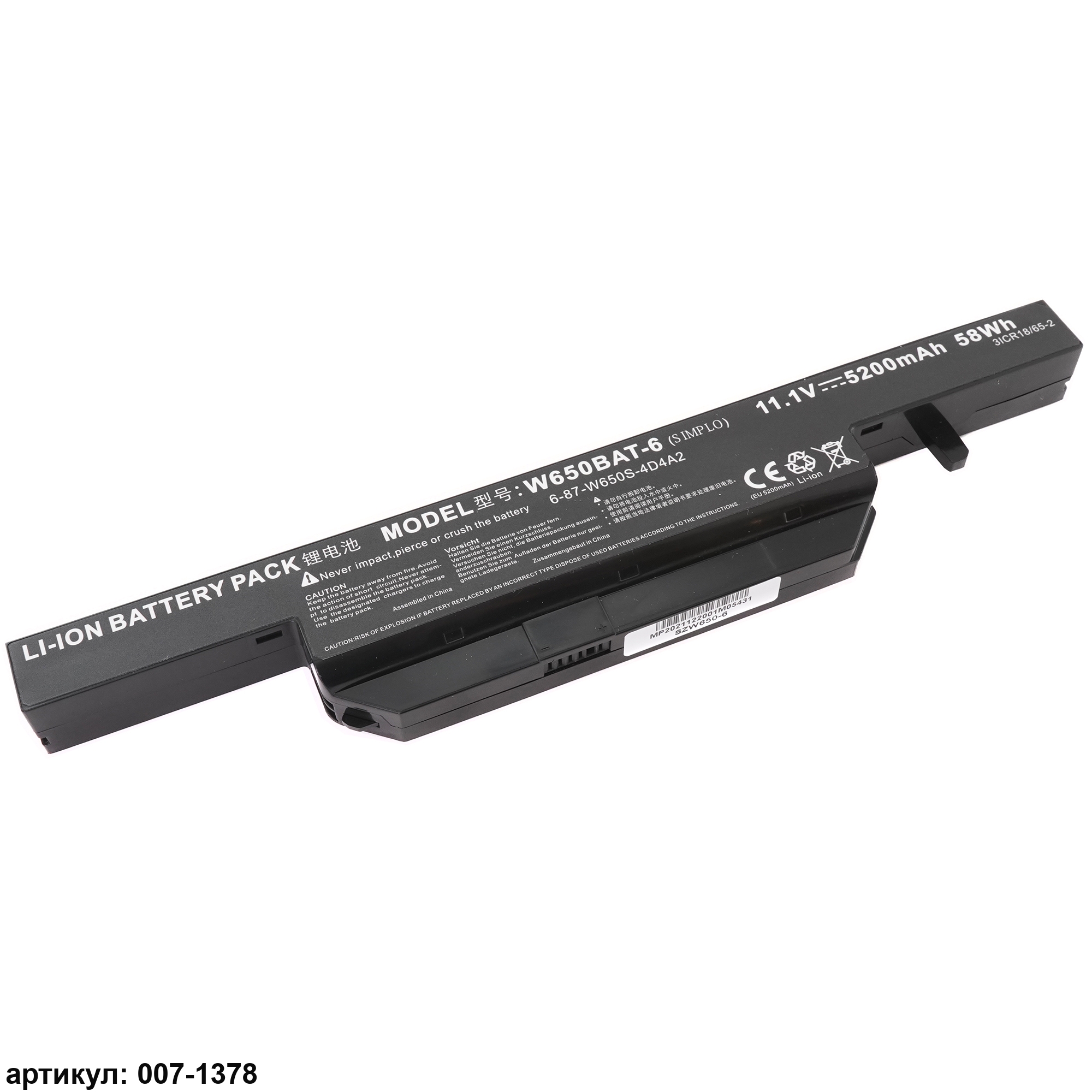 Совместимые P/N: 6-87-W650S-4D4A1, 6-87-W650S-4D7A1, 6-87-W650S-4D7A2, W650BAT-6, 6-87-W650S-4D4A2, 6-87-W650S-4E7, 6-87-W650S-4E72, W650BAT-6