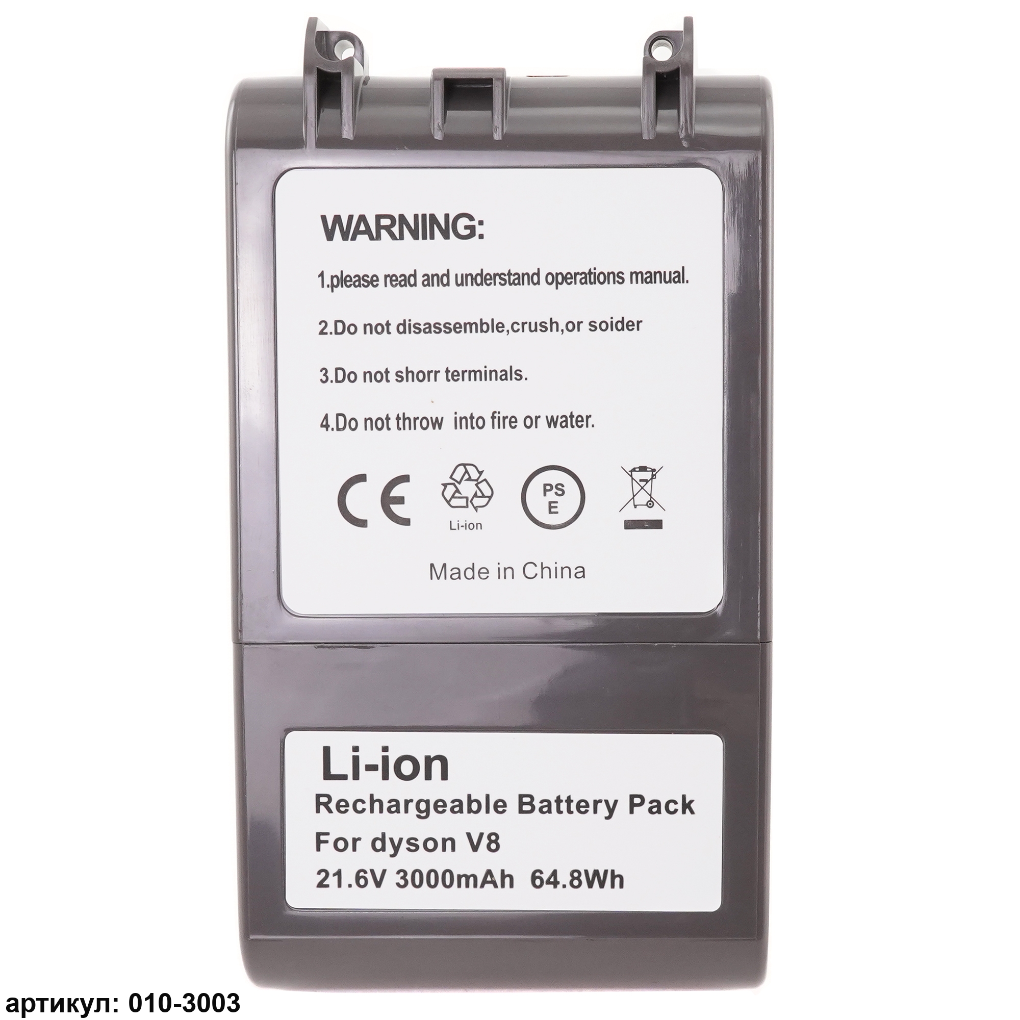 Подходит к пылесосам: Dyson V8, V8 Absolute, V8 Animal, Exclusive, V8 Fluffy, V8 Range (SV10, SV10E)Совместимые p/n: 225403, 215681, 215866-01/02, 215967-01/02, PM8-US-HFB1497A, PU2-JP-HFA4456A, CS-DYC800VX, 967834-02Обращаем Ваше внимание: Определить, подходит ли аккумулятор к Вашему устройству, можно по модели или по парт-номеру (p/n), указанному на аккумуляторе.