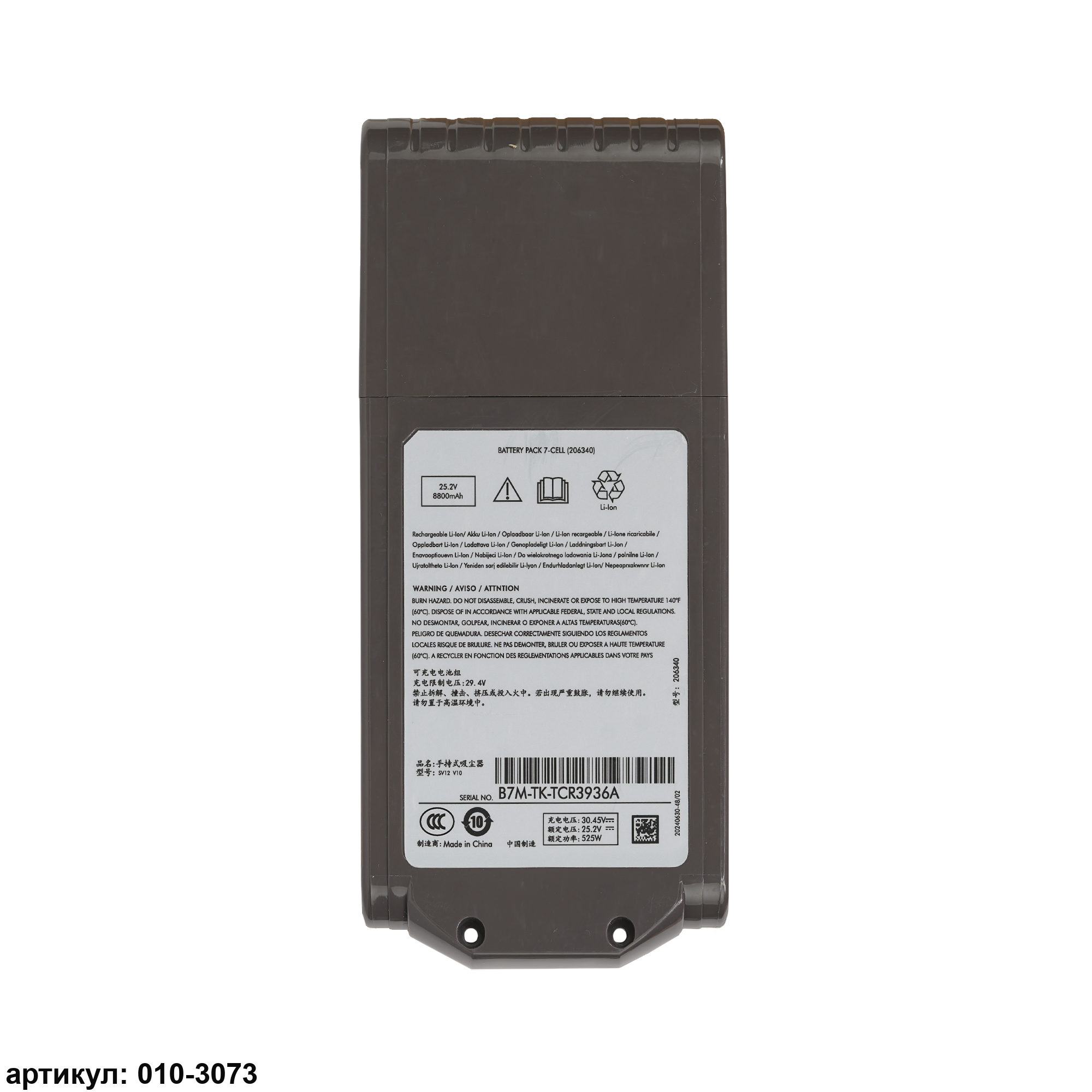 пылесосам: Dyson V10, V10 Absolute, V10 Animal, V10 Cyclone series, V10 Cyclone Animal, V10 Cyclone Absolute, V10 Total Clean, SV12Совместимые P/N: CS-DYC100VX, 206340, 237178-01/04, 237178-04/02, 237178-12/01, 237178-13/01, 240923-32/02, 250071-02/01, 258254-03/02, 969352-02