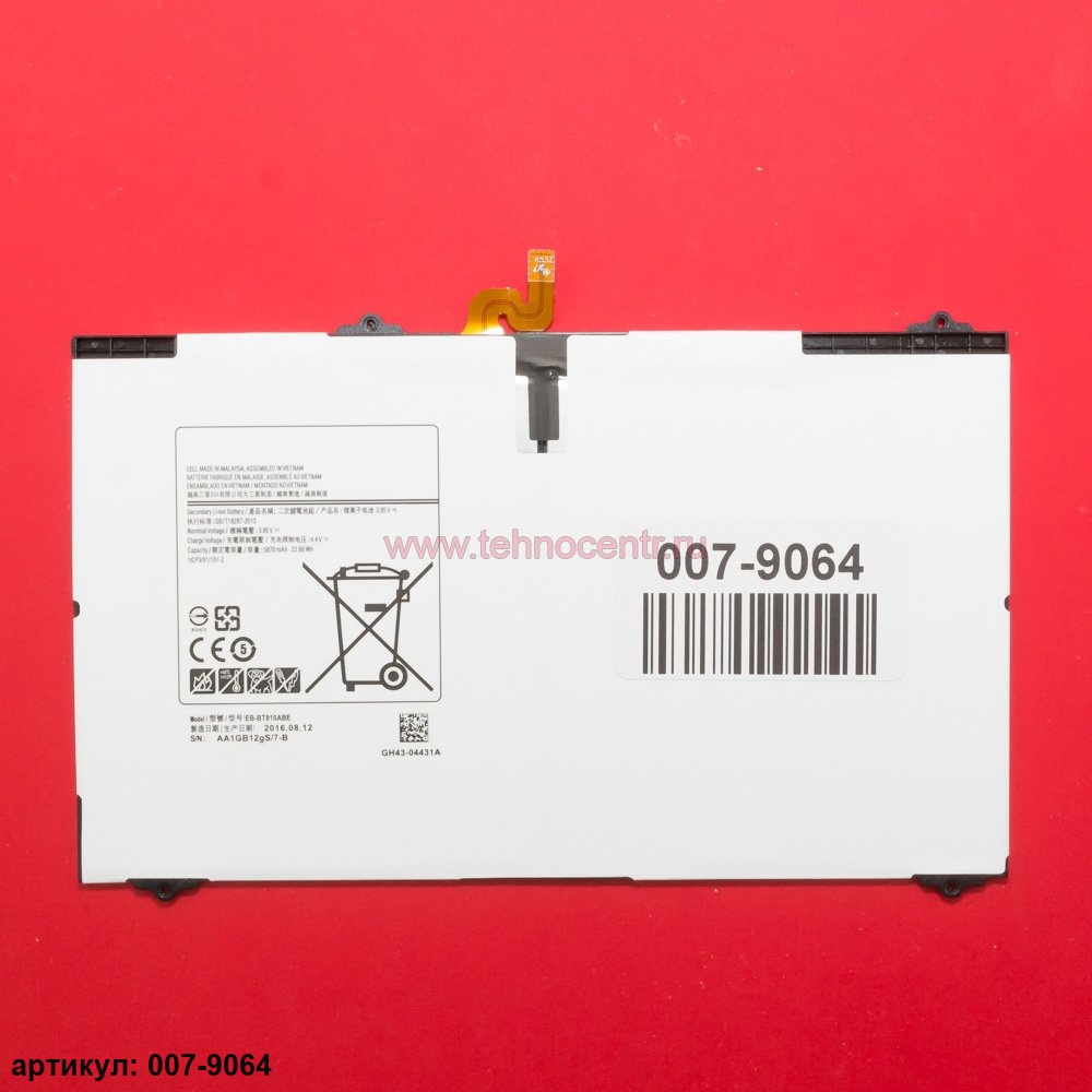 Подходит к планшетам: Samsung Galaxy Tab S2 9.7 SM-T810, SM-T815, SM-T817, SM-T819Совместимые p/n: EB-BT810ABA, EB-BT810ABE, GH43-04431A