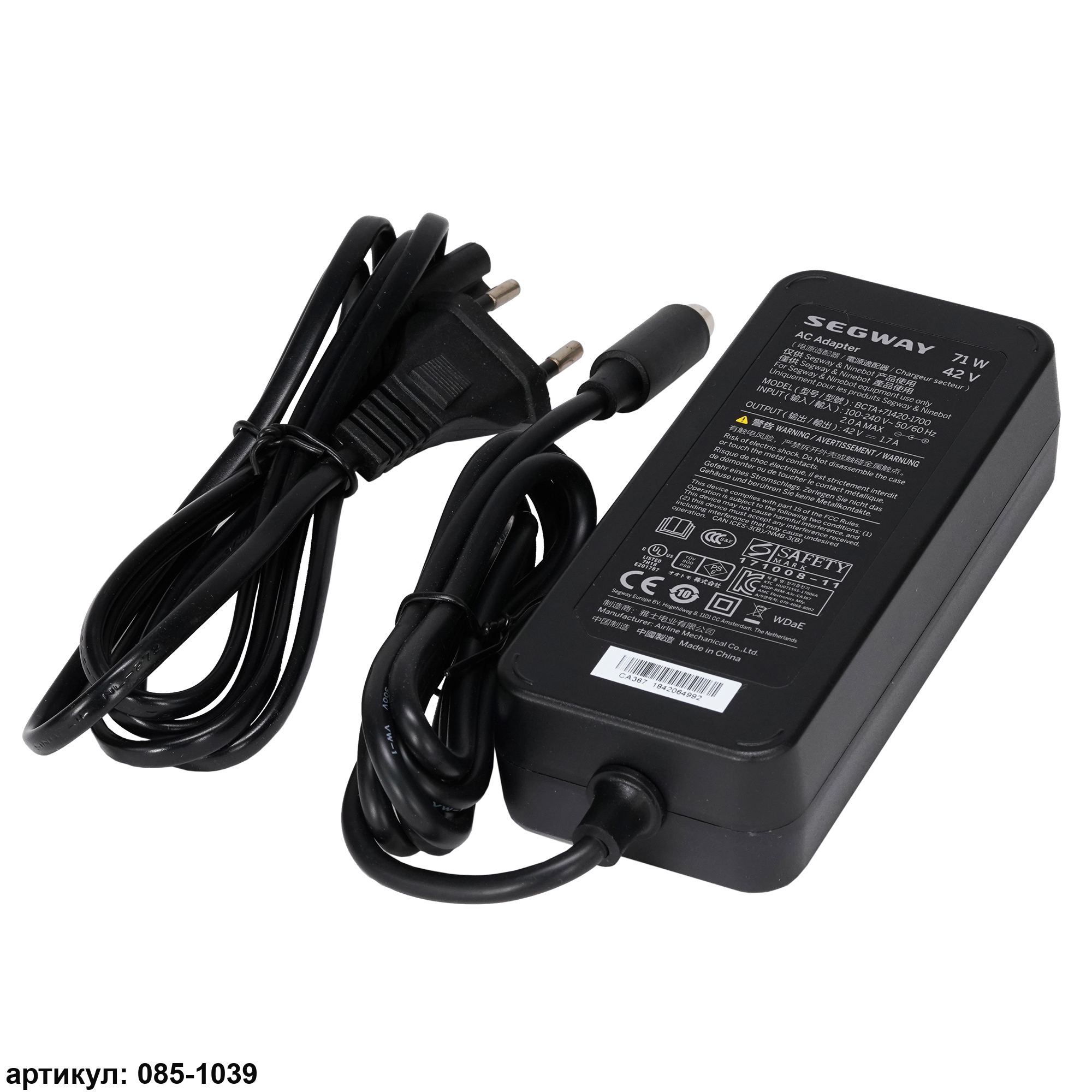 Блок питания для самоката: Xiaomi Mijia Electric Scooter M365, Ninebot ES1, Ninebot ES2, Ninebot ES4p/n: HT-A09-71W, A159A-420002000, AD024-EF2Штекер: RCA 8 мм (с центральным пином)