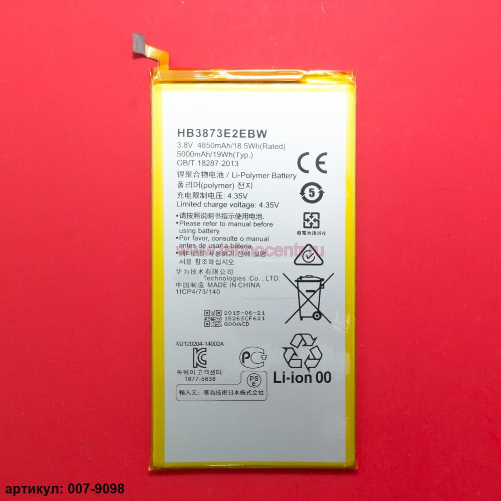 Подходит к планшетам: Huawei MediaPad X1 7.0 3G 7D-501U, MediaPad X1 7.0 LTE 7D-501LСовместимые p/n: HB3873E2EBW