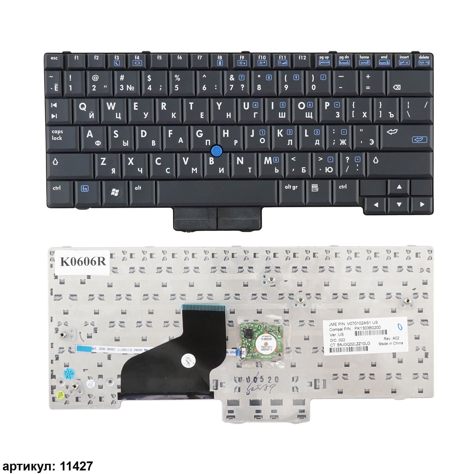 Клавиатура подходит к ноутбукам: HP Compaq 2510P, 2530PСовместимые P/n: AE0T2700010, PK1303B0100, V070146AS1, MP-06883SU-6920, 451748-001, AE0T2U00010, V070146AS1 US, MP-08A96LA-442, v070102as1, pk1303b0260, 506677-001