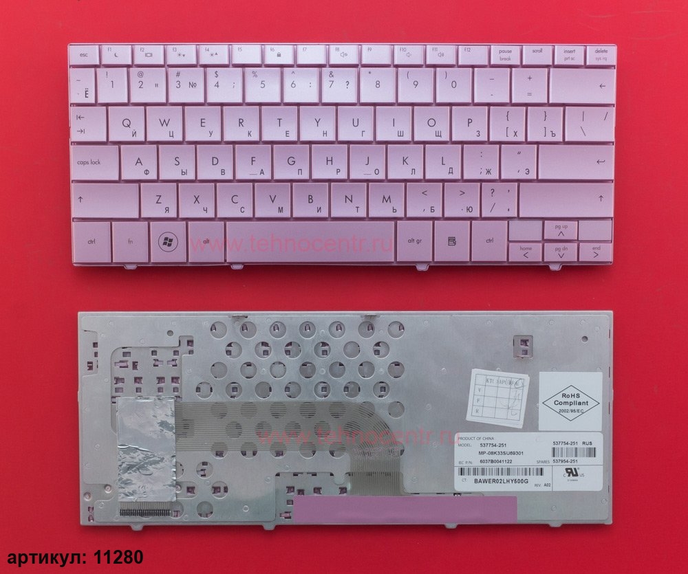 Клавиатура для ноутбука HP Compaq Mini 102, 110-1000, CQ10-100 розовая