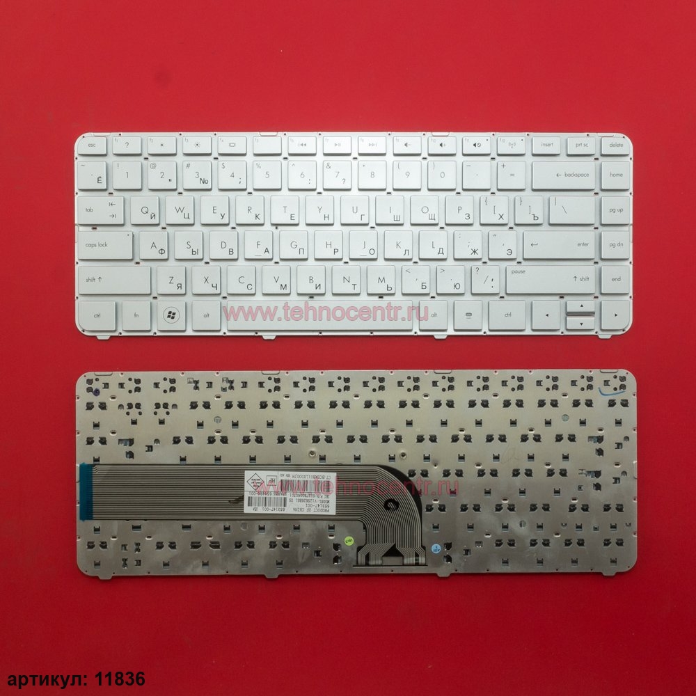 Клавиатура для ноутбука HP dm4-3000, dv4-3000 серебряная без рамки