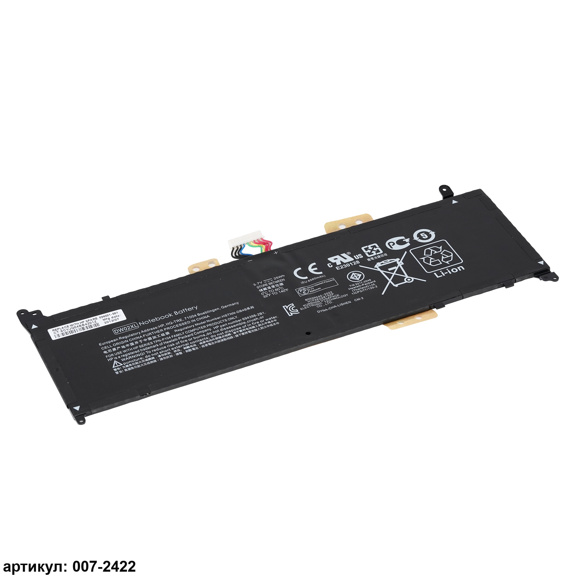 Совместимые P/N: DW02XL, HSTNN-IB4B, HSTNN-DB4B, TPN-P104, 694398-2C1, 694501-001