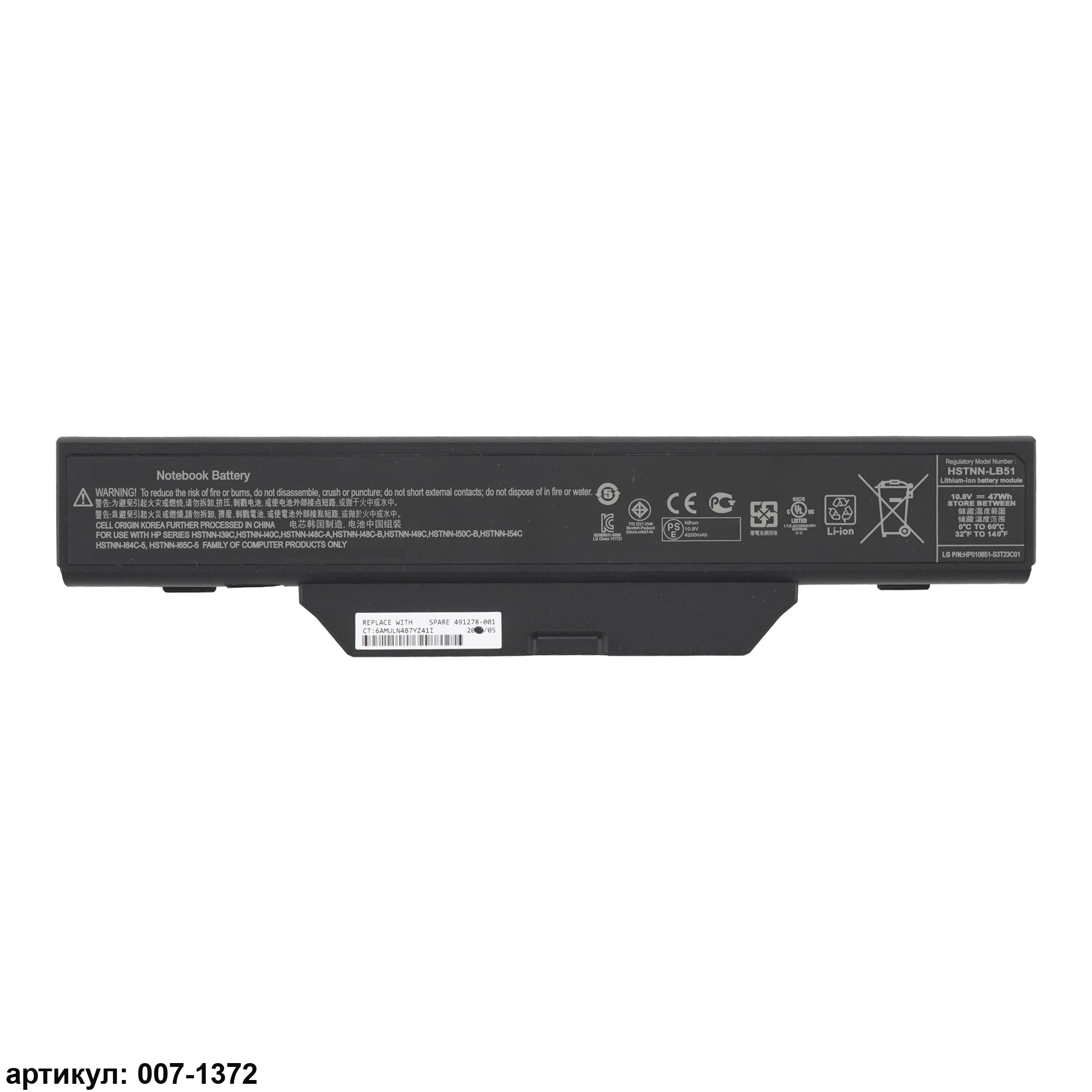 Совместимые P/N: 451085-121, 451085-141, 451085-142, 451085-621, 451085-661, 451086-001, 451086-121, 451086-141, 451086-161, 451086-361, 451086-362, 451086-621, 451086-661, 451568-001, 456864-001, 456865-001, 464119-142, 464119-143, 464119-161, 464119-162, 491278-001, 491279-001, 491654-001, 491657-001, 496897-001, 500764-001, 500765-001, 501870-001, 572187-001, 572188-001, 572190-001, 572191-001, DD06, GJ655AA, GJ655AA#ABH, GJ655AA-AX, HSTNN-FB51, HSTNN-FB52, HSTNN-I39C, HSTNN-I40C, HSTNN-I47C-A, HSTNN-I47C-B, HSTNN-I48C-A, HSTNN-I48C-B, HSTNN-I49C, HSTNN-I50C-A, HSTNN-I50C-B, HSTNN-I54C, HSTNN-I64C-5, HSTNN-I65C-5, HSTNN-IB51, HSTNN-IB52, HSTNN-IB55, HSTNN-LB51, HSTNN-LB52, HSTNN-OB52, HSTNN-XB51, HSTNN-XB52