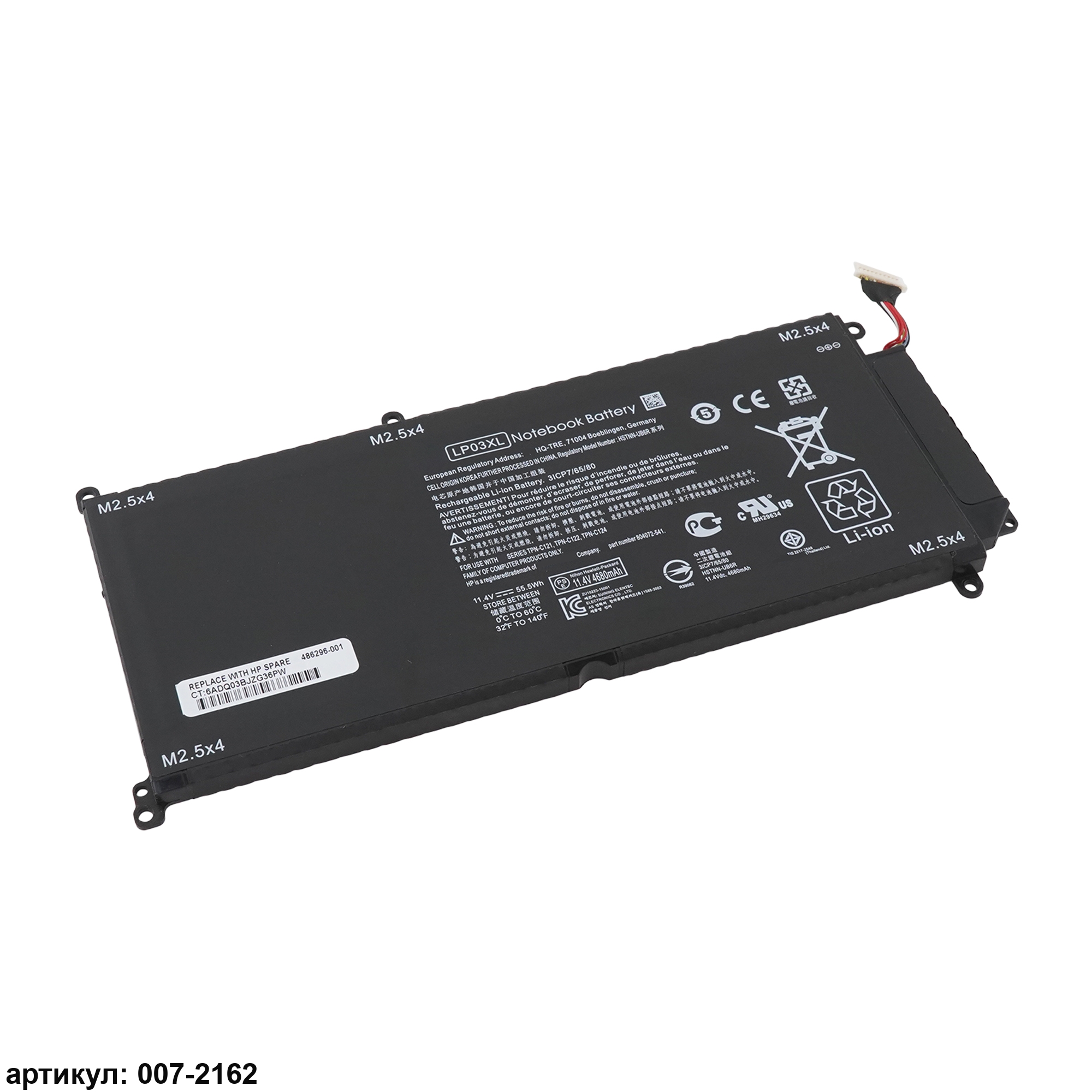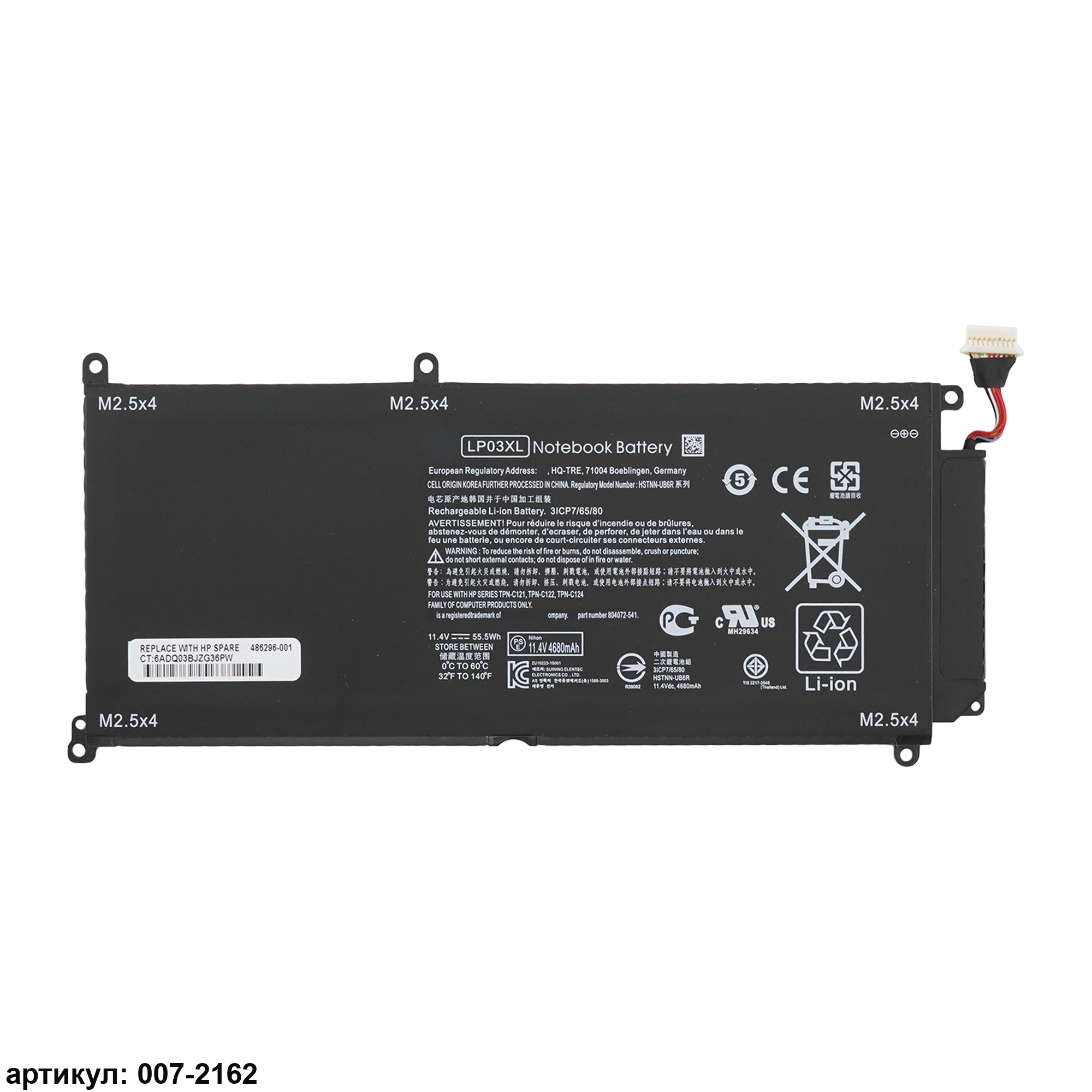 Совместимые P/N: LP03XL, LP03048XL, TPN-C121, TPN-C122, TPN-C124, HSTNN-DB6X, HSTNN-DB7C, 804072-241, 807211-121, 807211-221, 807211-241, 807417-005