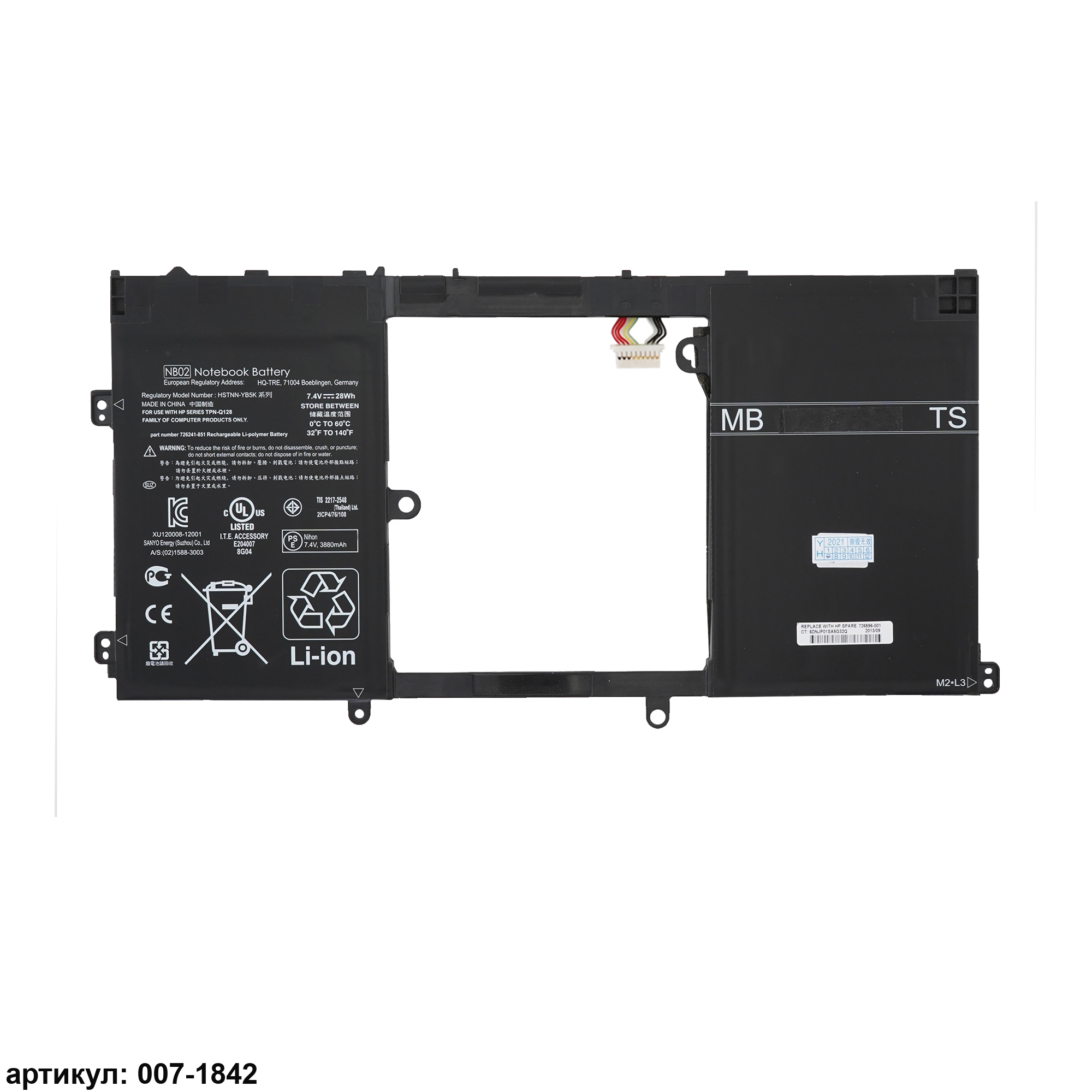 Совместимые P/N: NB02XL, HSTNN-DB5K, 726241-2C1, 726596-001