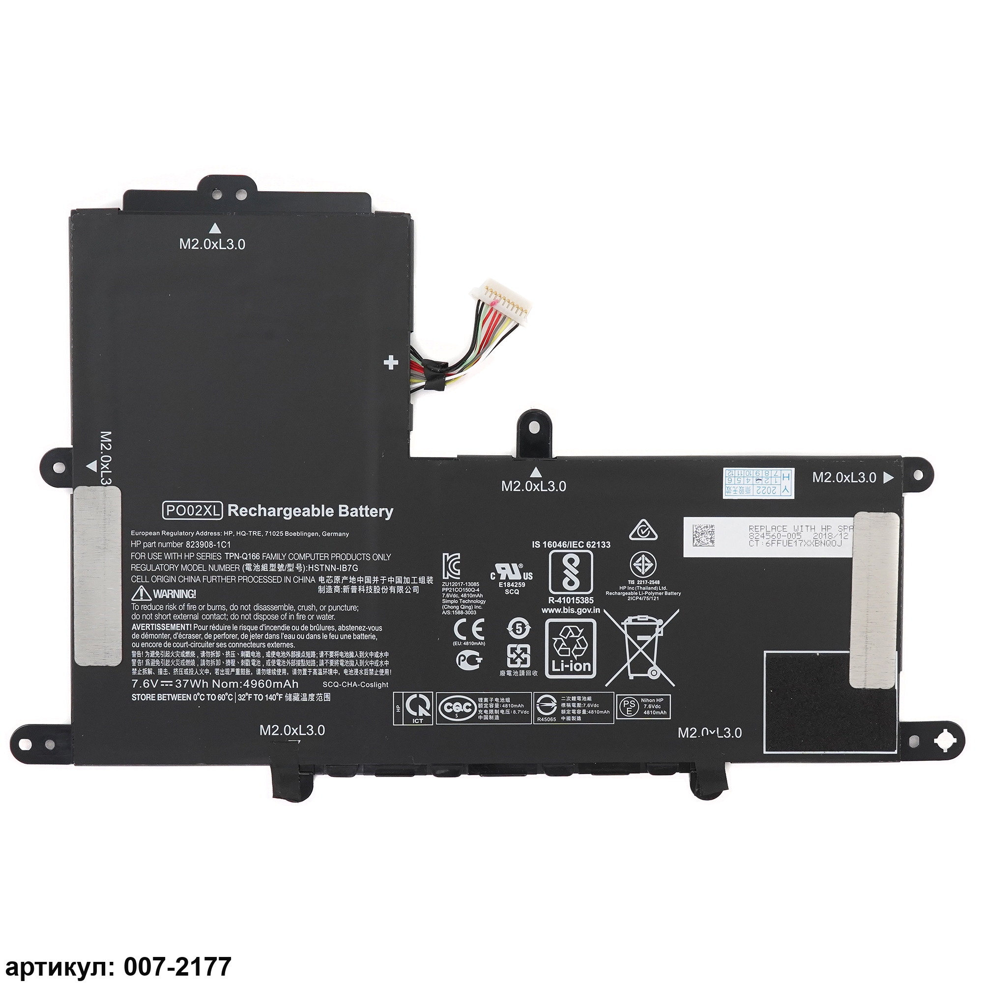 Совместимые P/N: 823908-2C1, 824560-005, HSTNN-DB-G, PO02XL