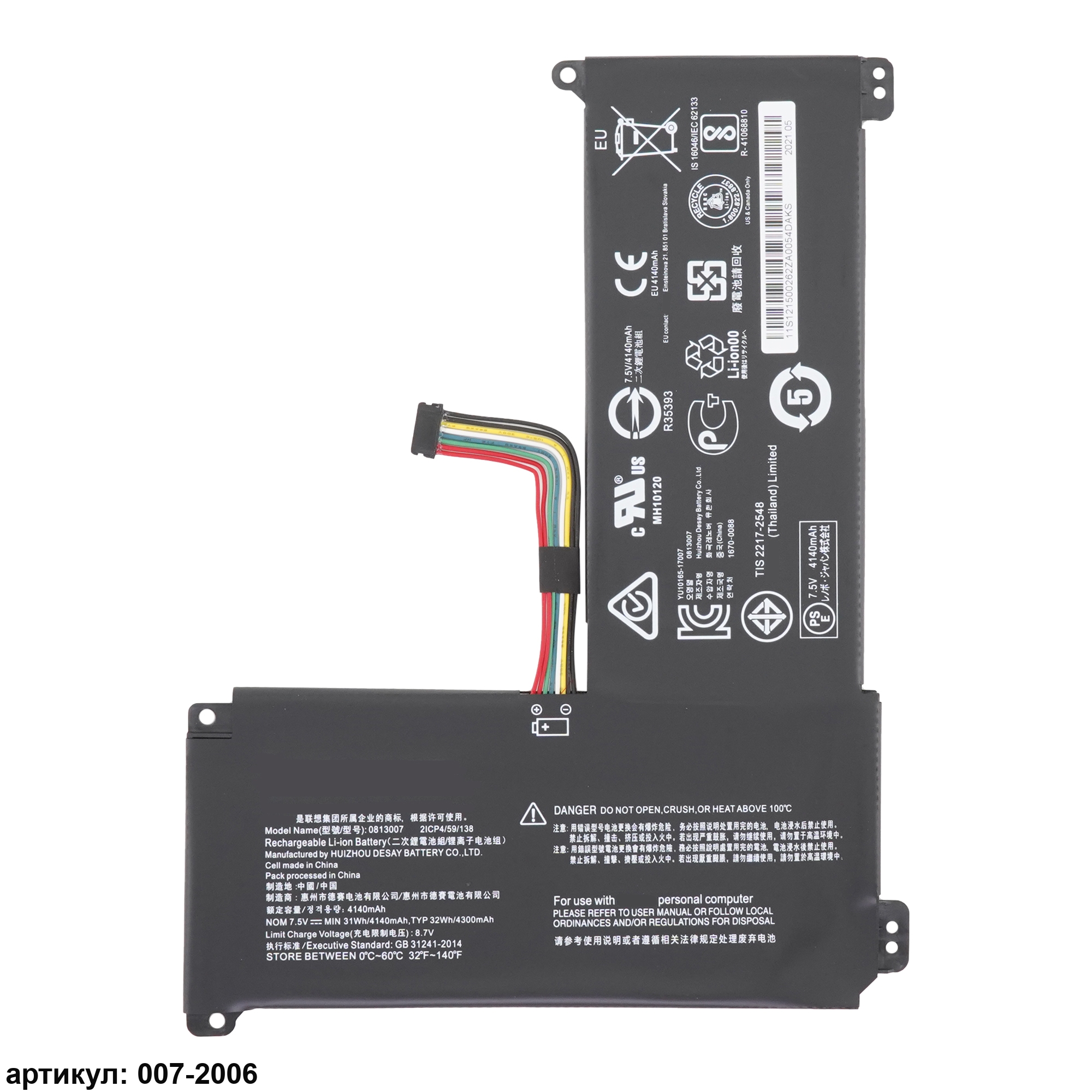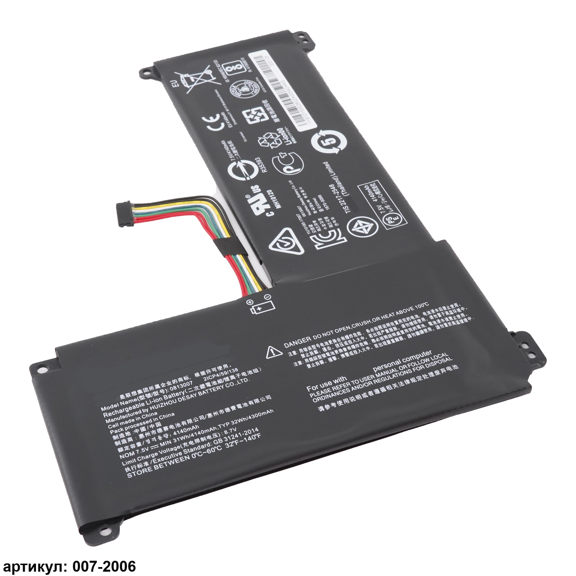 Подходит к сериям ноутбуков: Lenovo IdeaPad 120S-11IAP, 120S-14IAP, S130-11IGM, S130-14IGM, 130S-11IGM, 130S-14IGMСовместимые P/N: 5B10P23779, 0813007
