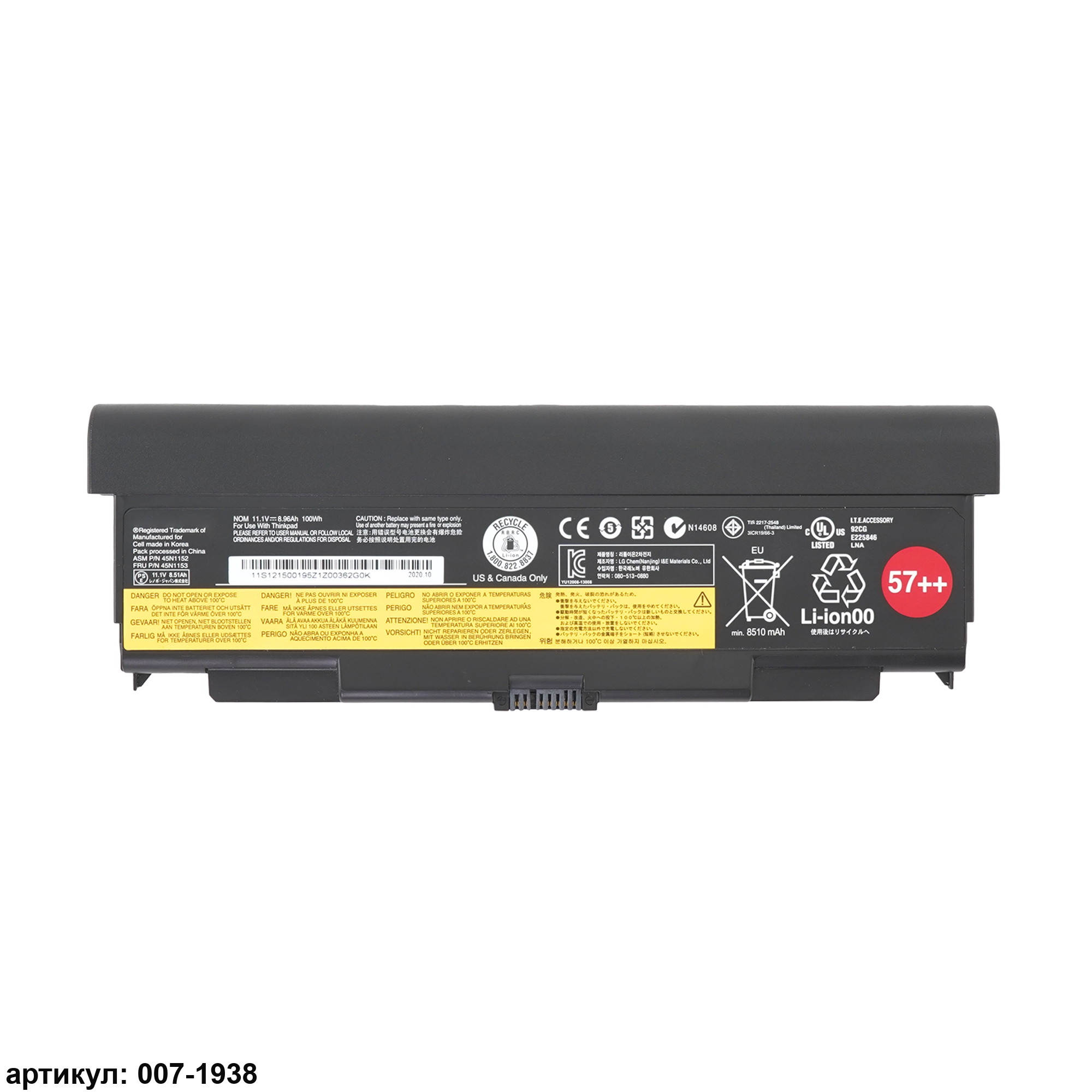 Подходит к сериям ноутбуков: Lenovo ThinkPad T440P, L440, L540, T540P 57++Совместимые P/N: 45N1152, 45N1151, 45N1144, 45N1145, 45N1153, 45N1150, 0C52864, 0C52863