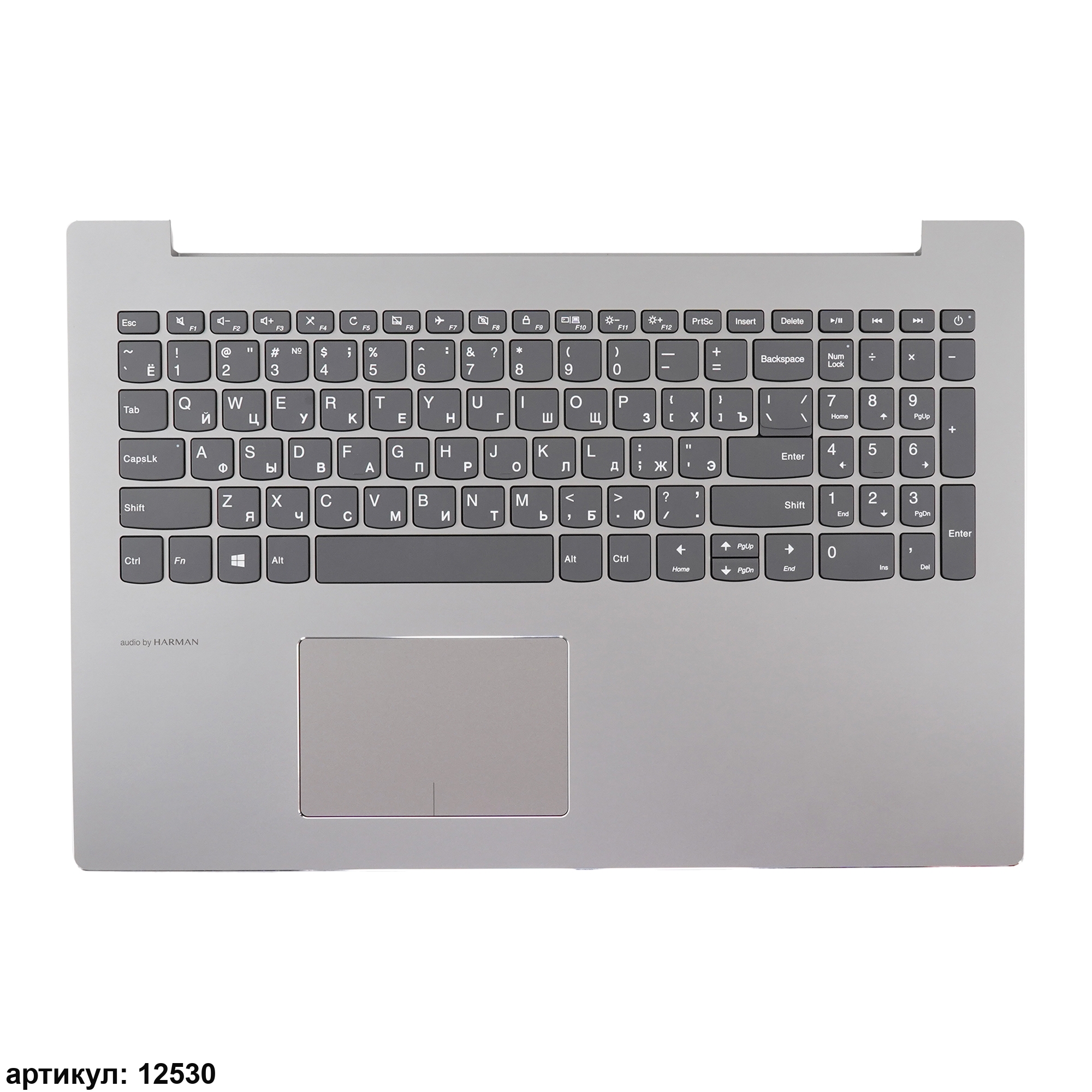 Клавиатура для ноутбука Lenovo 520-15IKB серая c серебристым топкейсом