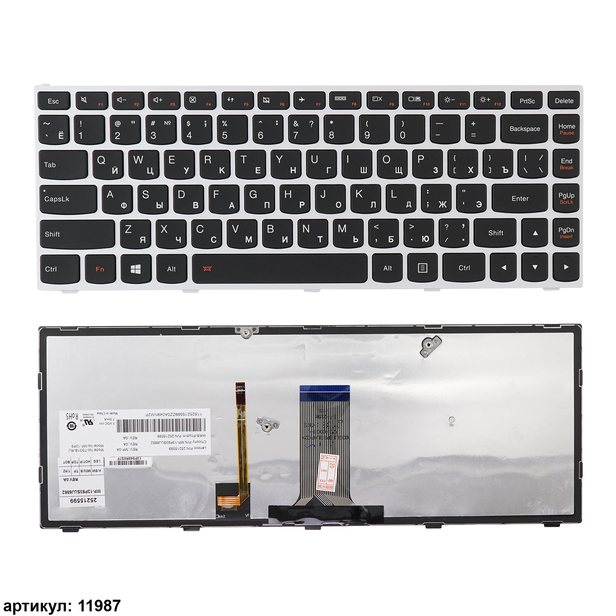 Обязательно сравнивайте Вашу клавиатуру с представленной на фотографии: направление и приблизительная длина шлейфа, крепления, размер кнопки Enter. Одинаковые модели ноутбуков могут использовать разные модификации клавиатур. Даже если на сайте модель, парт-номер стоят в совместимых, она может не подойти вам.