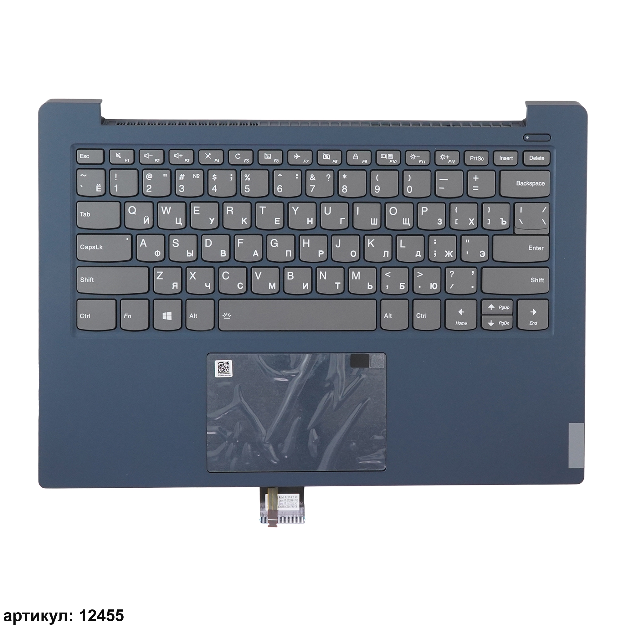 Клавиатура для ноутбука Lenovo IdeaPad S340-14API серая с синим топкейсом, с подсветкой