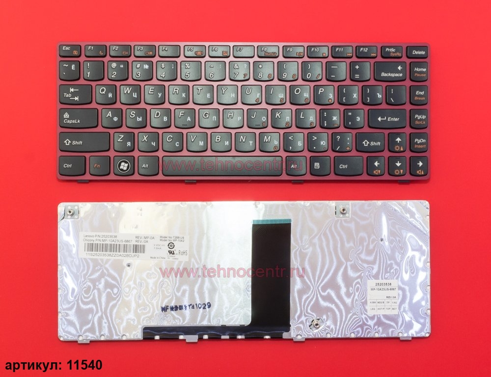 Клавиатура для ноутбука Lenovo IdeaPad V380 черная с красной рамкой