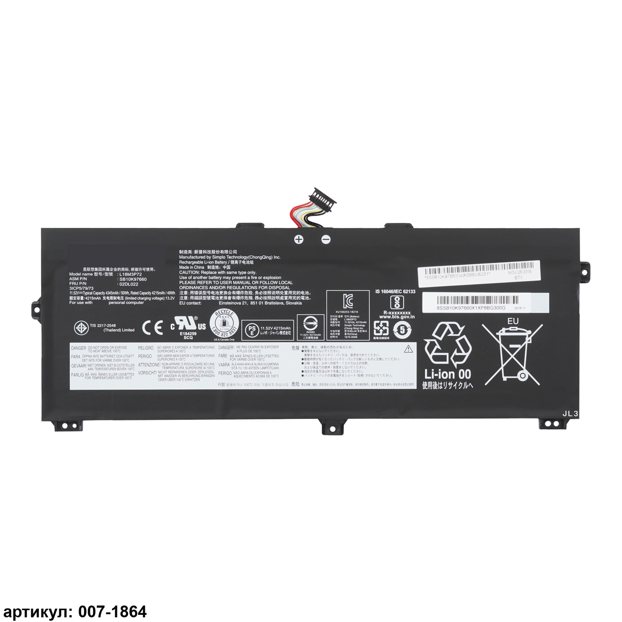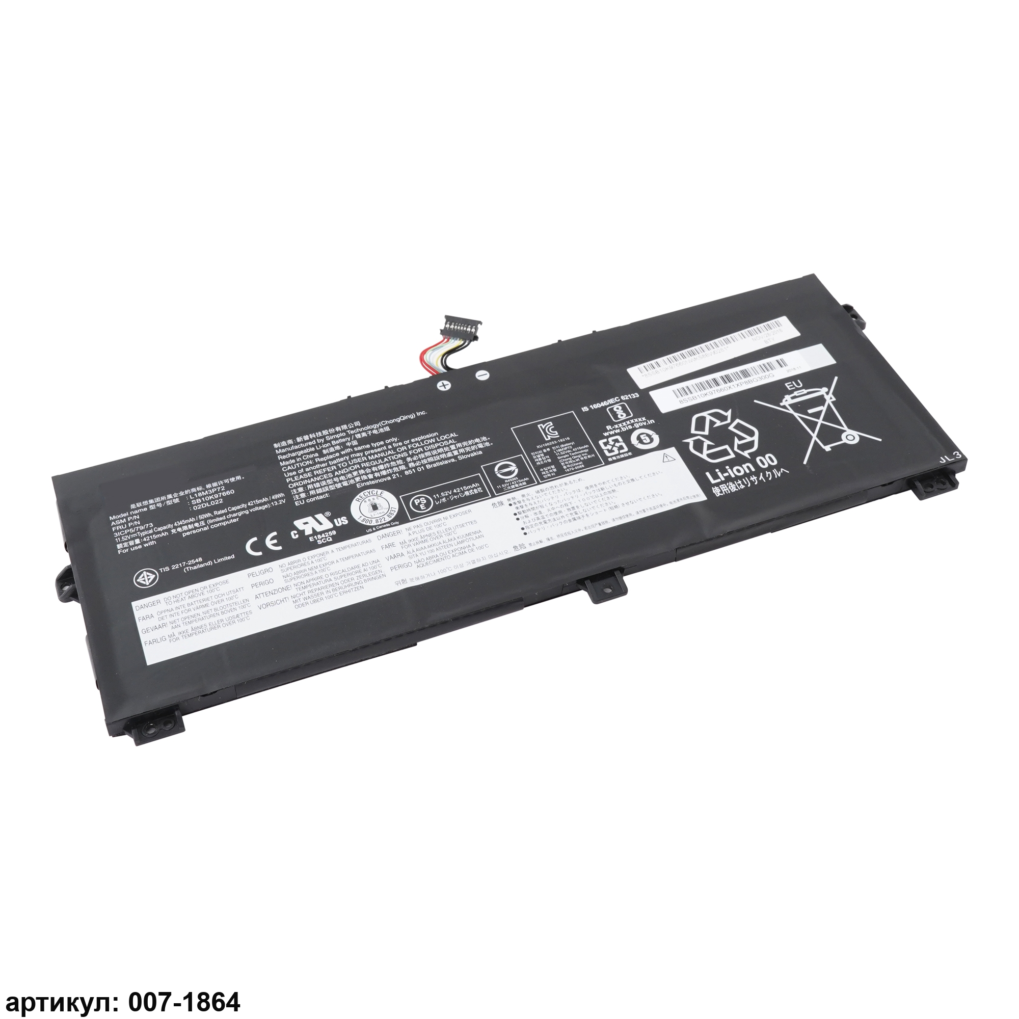 Совместимые P/N: L18L3P72, SB10K97659, L18M3P72, SB10K97660, 02DL021, 02DL022, 5B10W13928, 5B10W13929, 02HM886, 5B10W13927