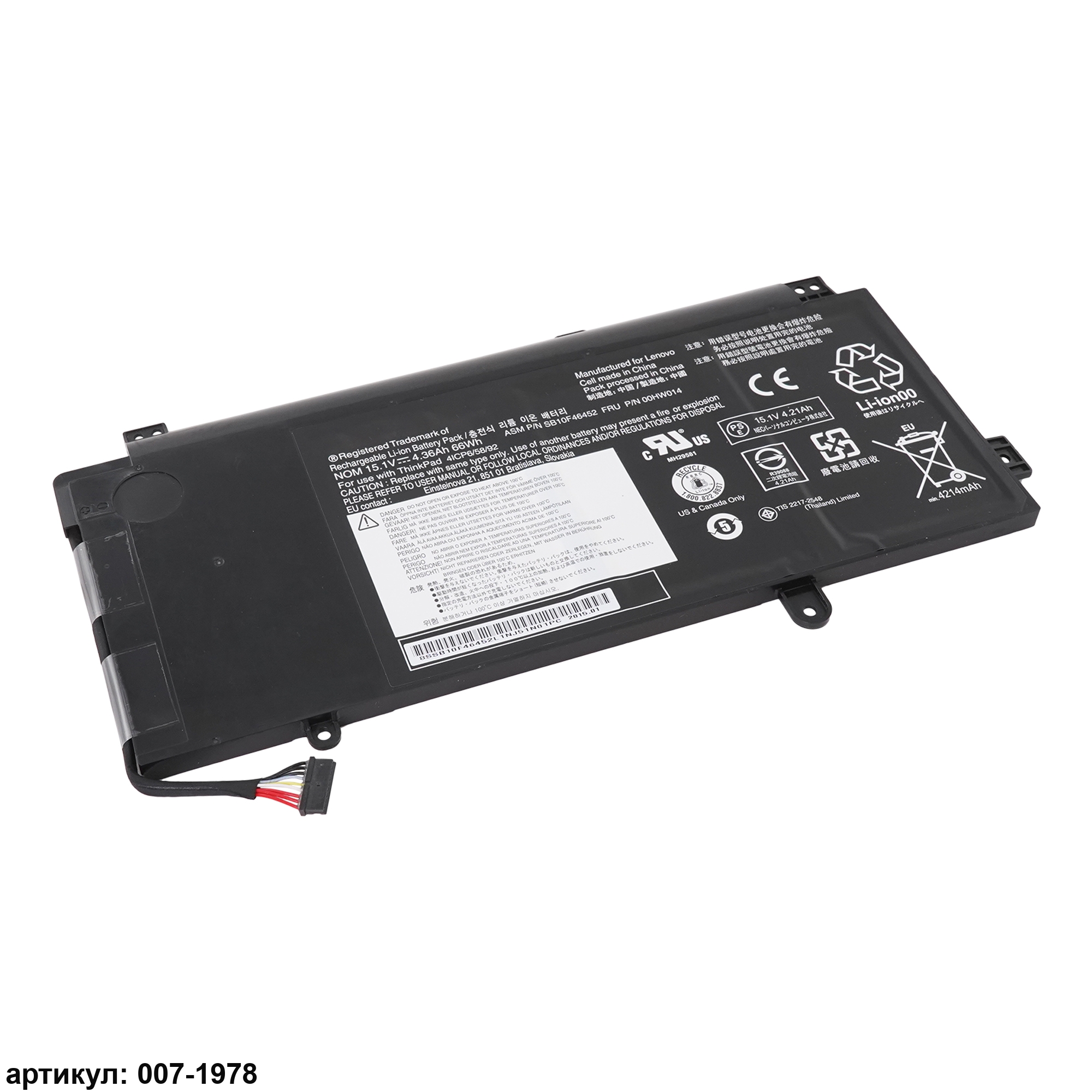 Подходит к сериям ноутбуков: Lenovo ThinkPad Yoga 15Совместимые P/N: 00HW014, 00HW015, SB10F46452