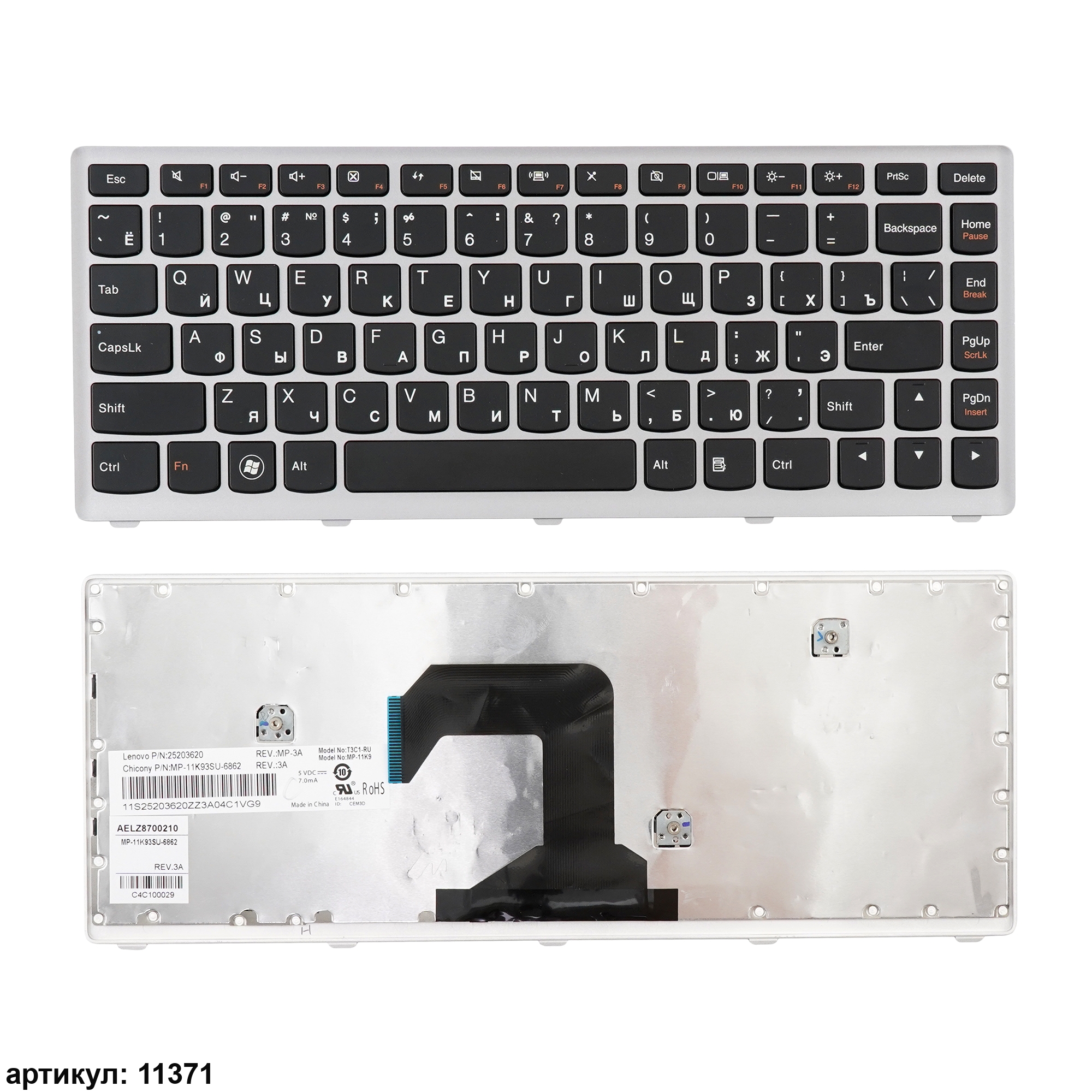 Клавиатура подходит к ноутбукам: Lenovo IdeaPad U410Совместимые P/n: 25203740, 25203620, AELZ8700110, 9Z.N7GSQ.A0R, NSK-BCASQ, T3C1-RU, NSK-BCASQ 0R, T3C1-RUS, MP-11K93SU-6862, 25-203740, NSK-BC4SQ, 9Z.N7GSQ.40R, 25-203729, 25-208924, 25203729, 25208924, T3C1-US, AELZ8U00110, AELZ8U01110, 9Z.N7GSQ.A01, 9Z.N7GSQ.401, 25203680, AELZ8700010, V-127920DS1-RU