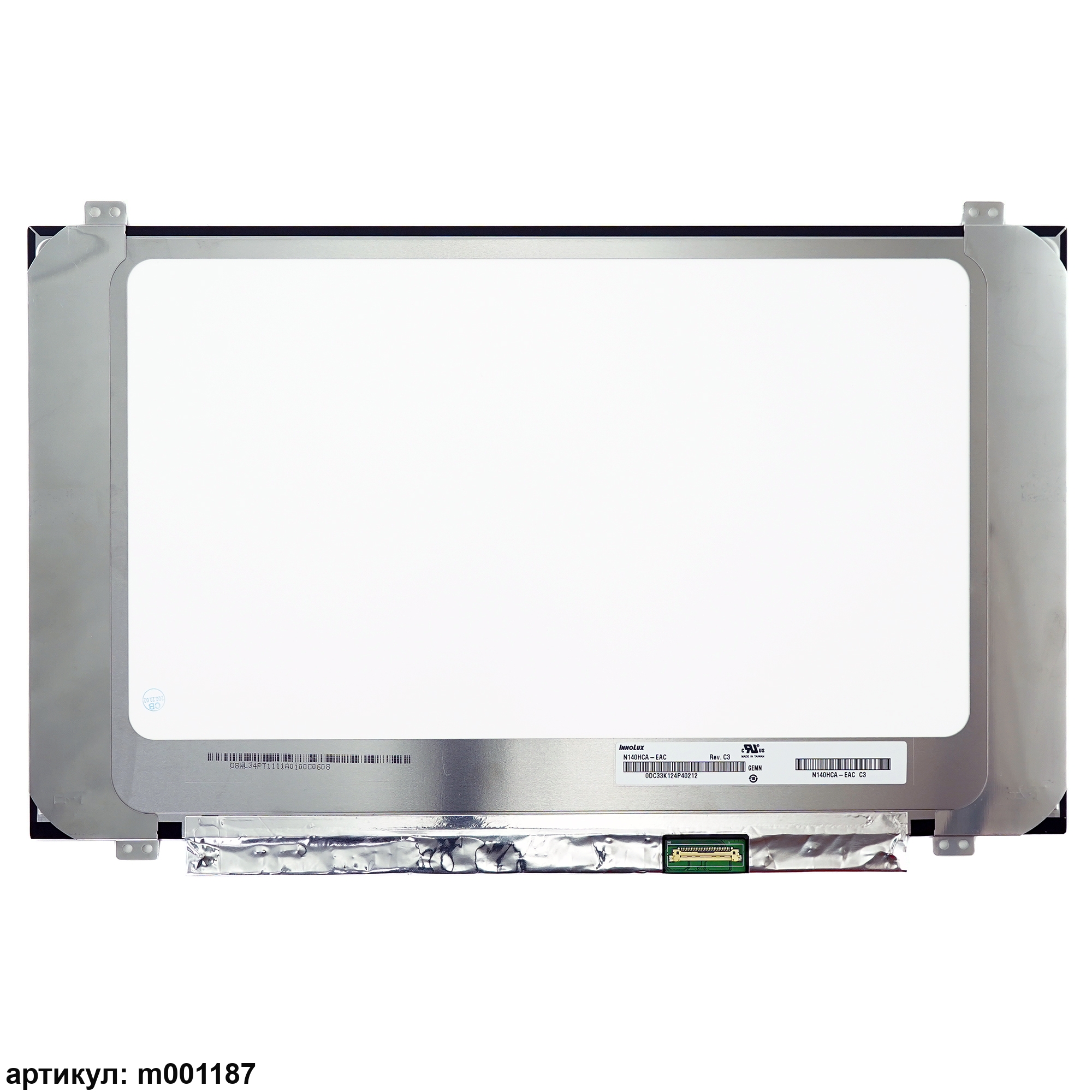 Матрица тонкая (Slim), приклеенные уши вверх/вниз.Разъем расположен снизу справа на внешней плате.Тип матрицы: IPSСовместимые модели: N140HCA-EAC Rev.C3