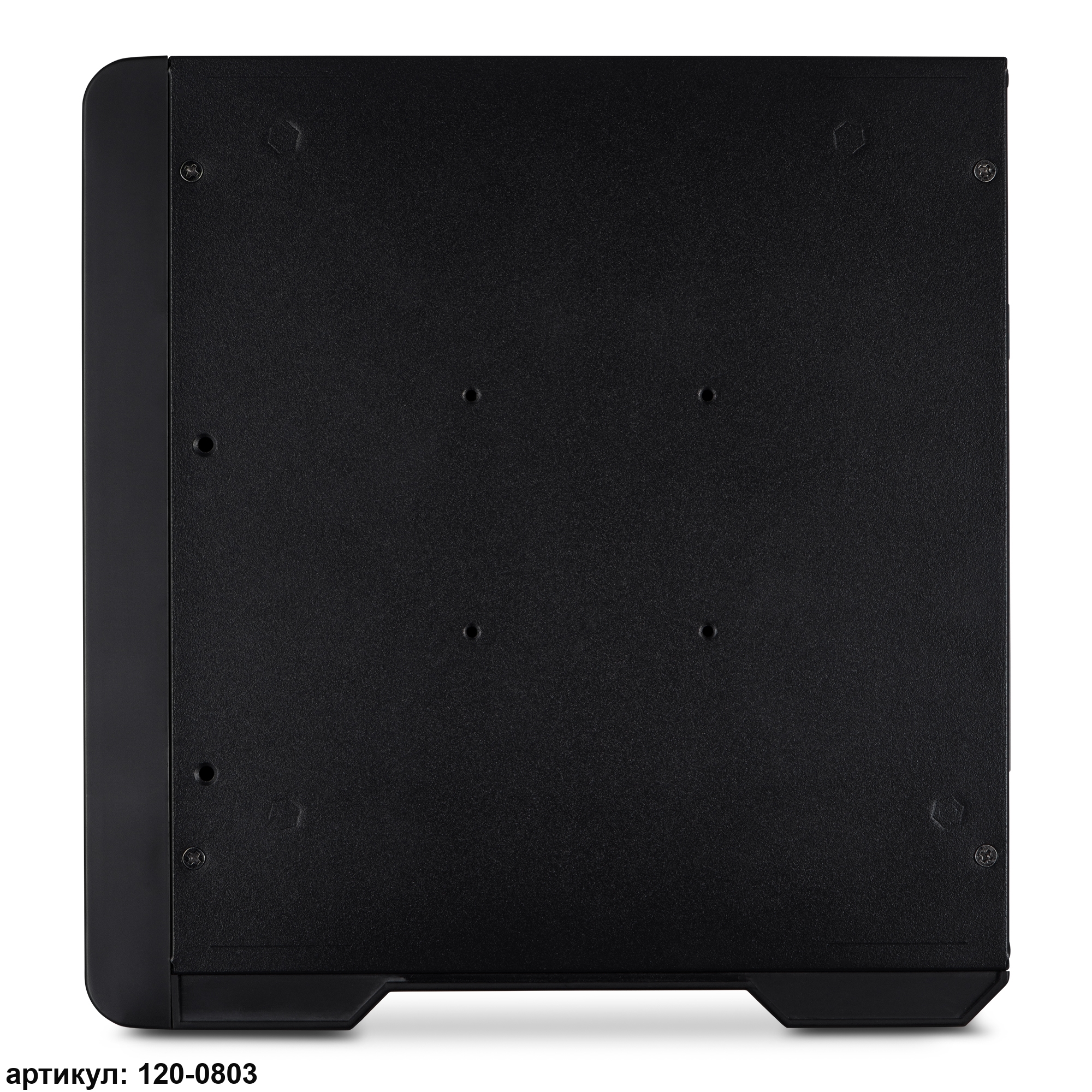 Черный металлический корпус вертикального типа отличается изысканным и современным дизайном, который подойдет для использования как в корпоративной, так и домашней среде. На его фронтальной части имеется несколько USB-портов, через которые осуществляется быстрое подключение без лишних манипуляций. Там же расположены гнезда для подключения микрофона и наушников. Боковая часть корпуса перфорирована, что обеспечивает вентиляцию и помогает компонентам эффективно охлаждаться.