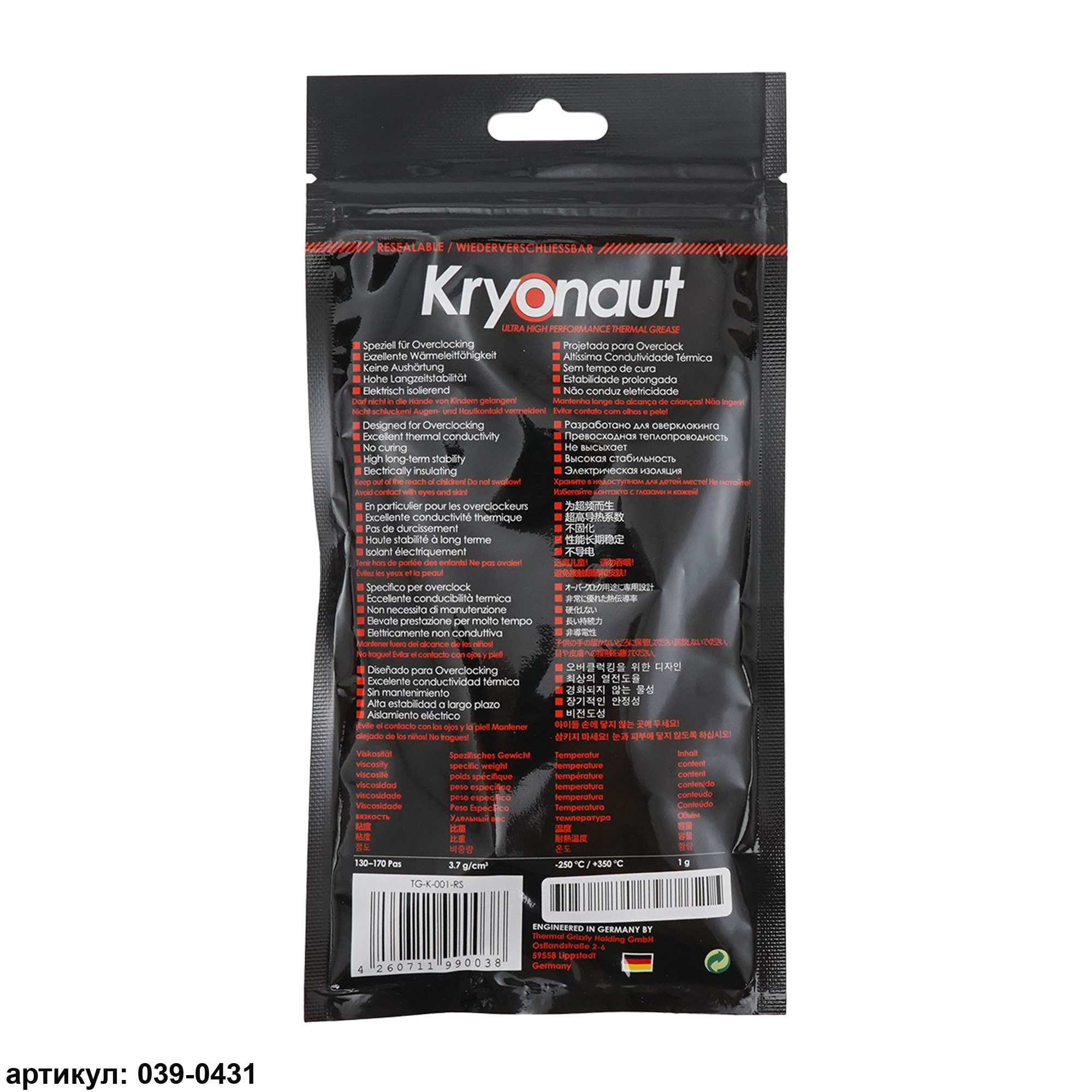 Термопаста Grizzly Kryonaut TG-K-001-RS (1 г)