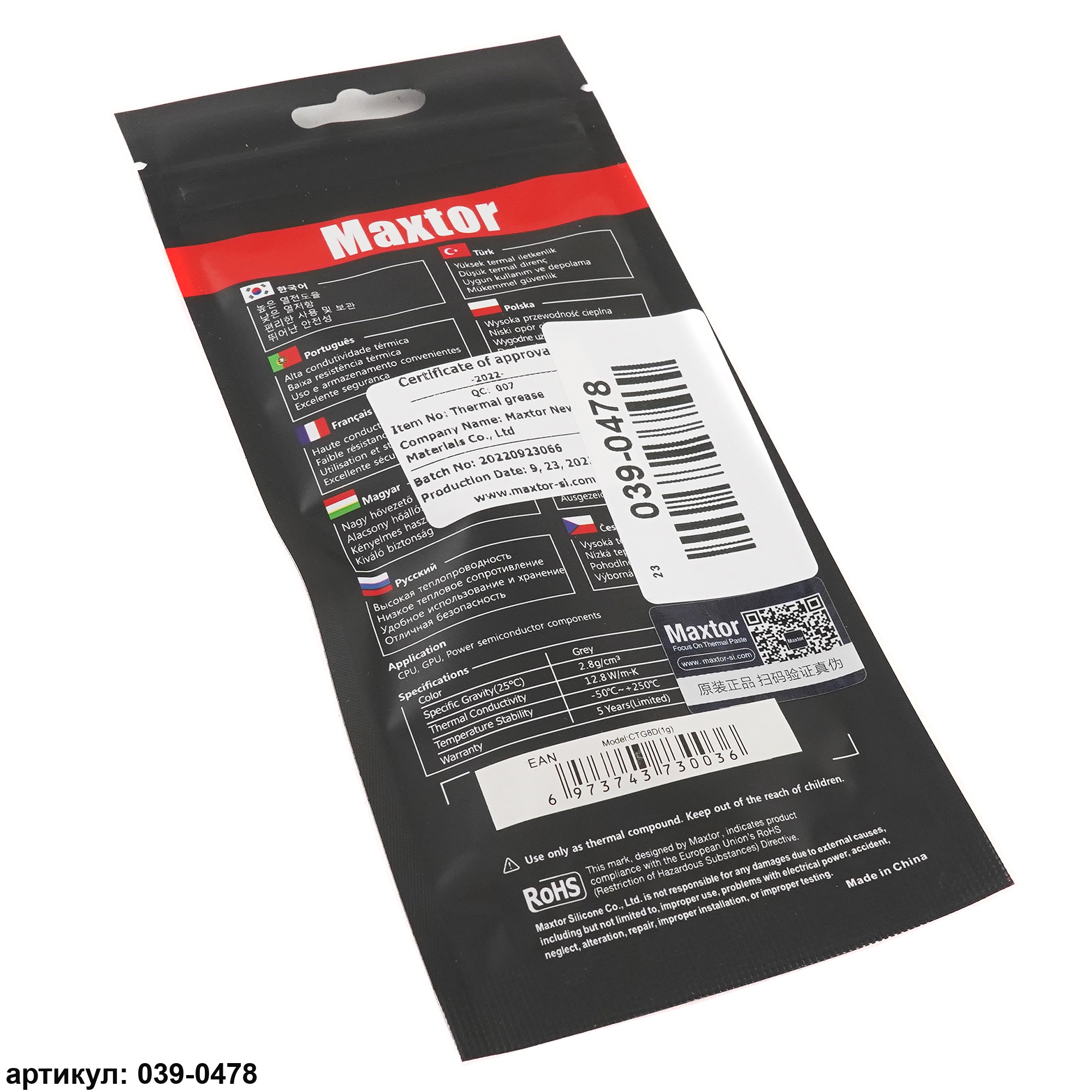 Термопаста Maxtor Thermal Grease CTG8 (1 г), теплопроводностью 12.8 Вт/м*К