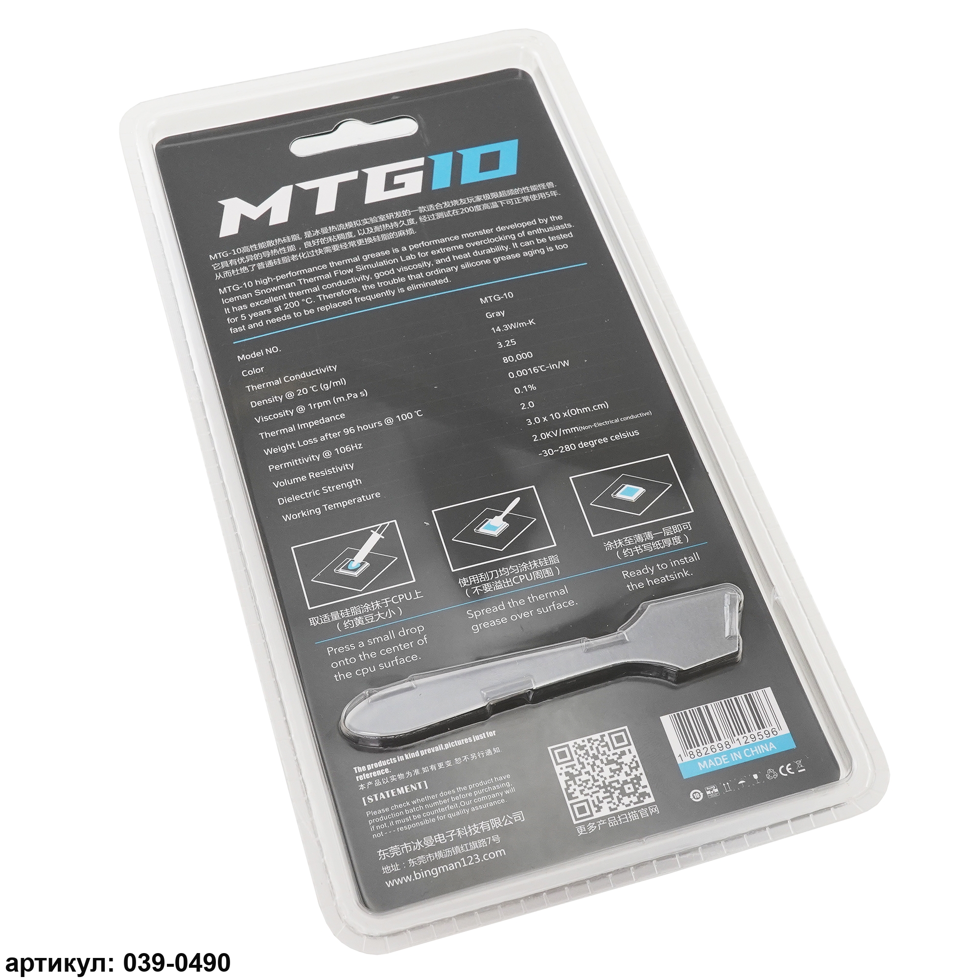 Термопаста Snowman MTG-10 (10 г), теплопроводностью 14.3 Вт/м*К